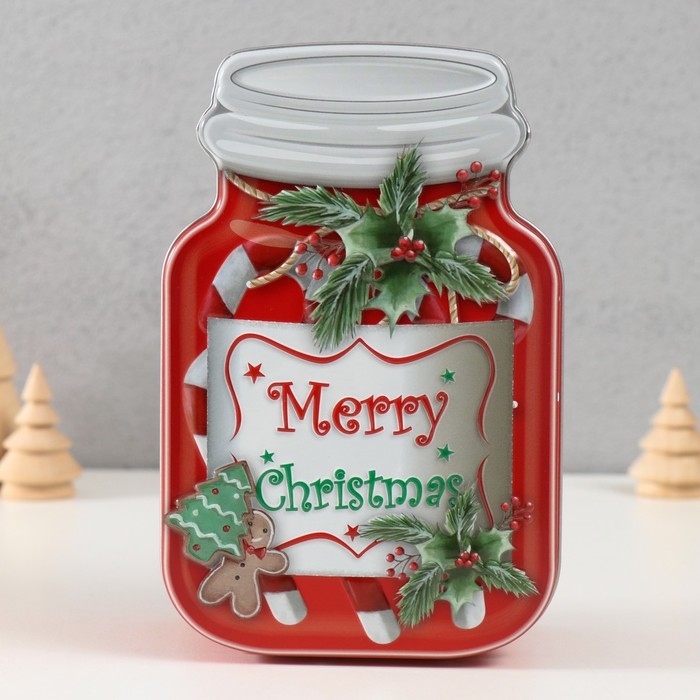Шкатулка металл "Банка с леденцами" красная 15,5х10х5,5 см