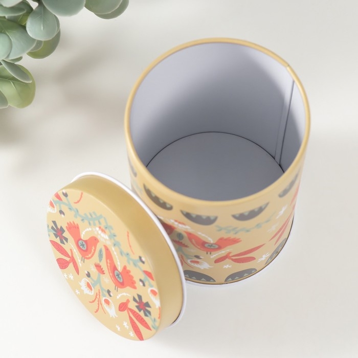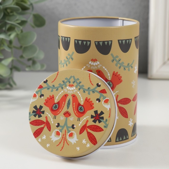 Шкатулка металл цилиндр "Птички и цветочки" 7,5х7,5х11 см