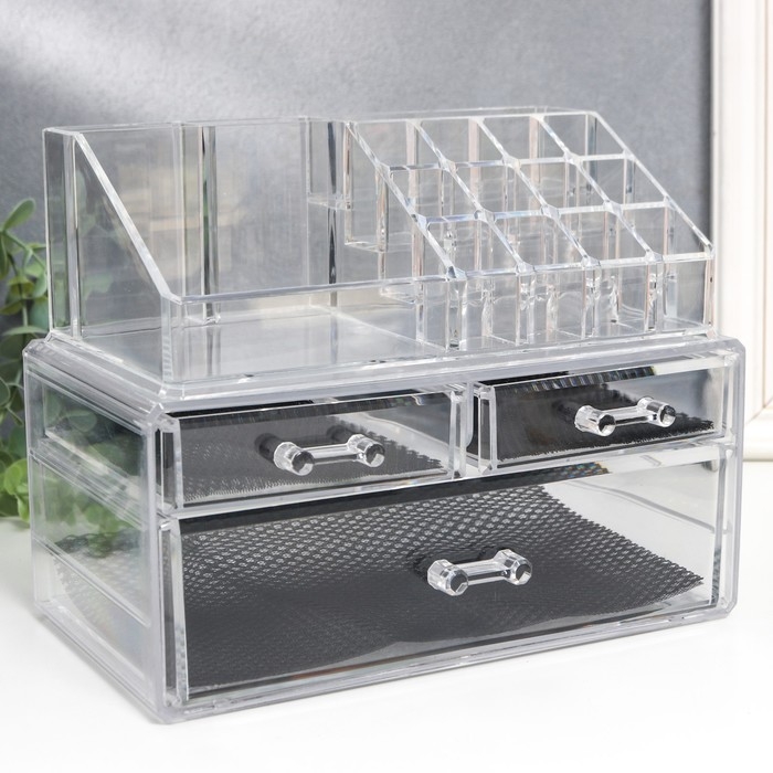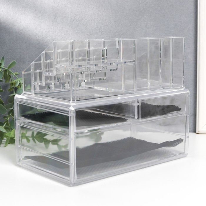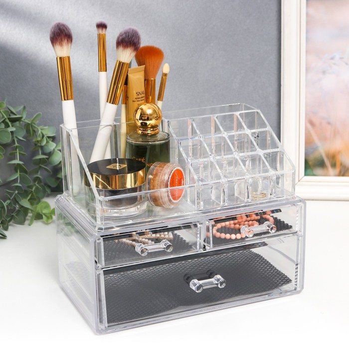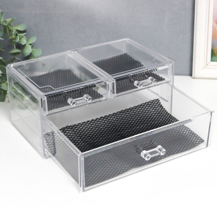 Шкатулка-органайзер пластик 3 ящика прозрачная 19х14,5х24 см