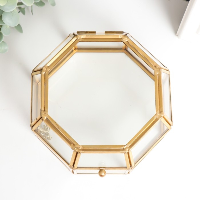 Шкатулка стекло с металлическим каркасом "С гранями" золото 8,5х15,5х14,5 см