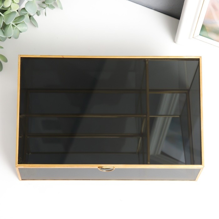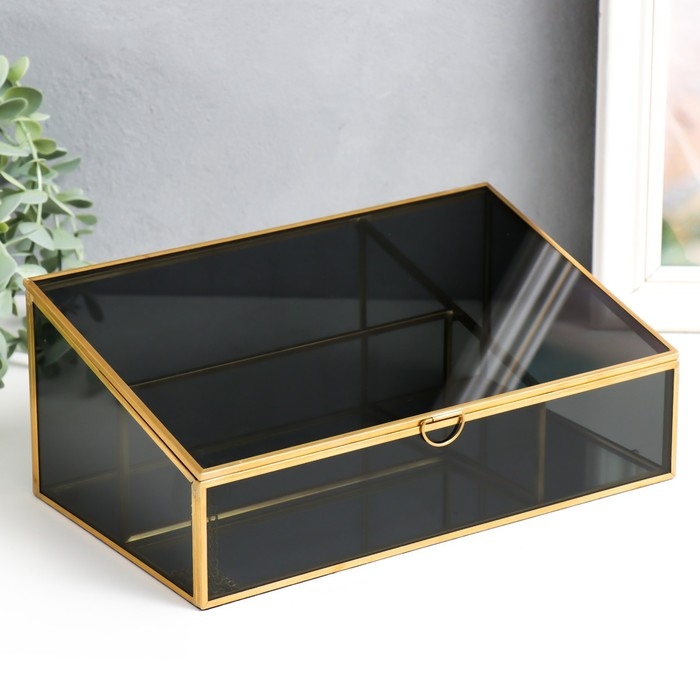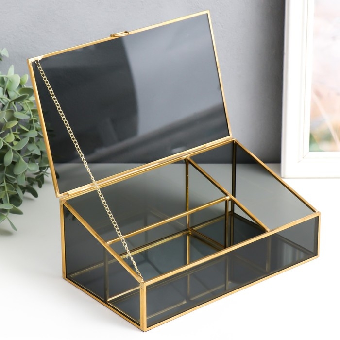 Шкатулка стекло с металлическим каркасом "Затемнённая" золото 10х14,5х25 см