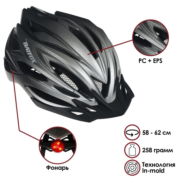 Шлем велосипедиста BATFOX, р. 58-62 см, цвет серый