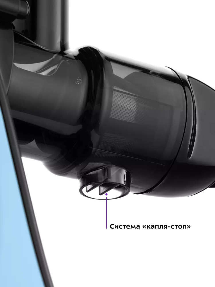 Шнековая соковыжималка работает на низких скоростях вращения. Низкая скорость вращения обеспечивает более низкую температуру в процессе отжима в отличие от центробежной соковыжималки, что способствует сохранению питательной ценности продуктов. В шнековой соковыжималке сок почти не вспенивается, а время его контакта с воздухом минимально, поэтому сок не окисляется кислородом.