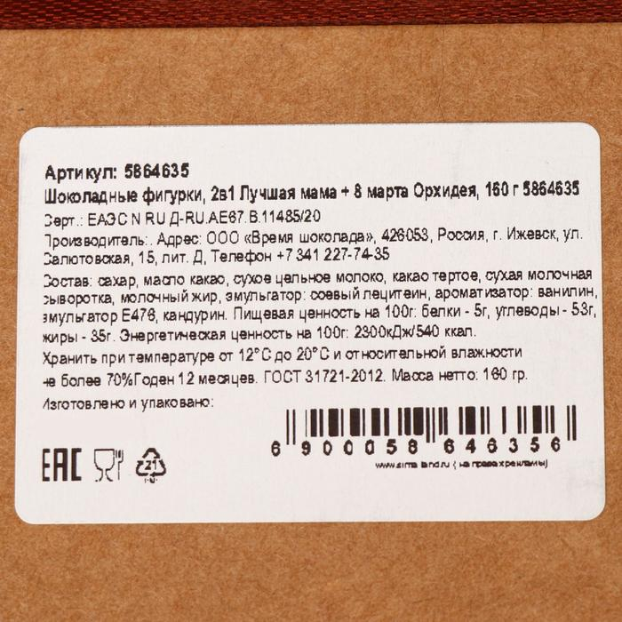 Шоколадные фигурки, 2 в 1 «Лучшая мама + 8 марта Орхидея», 160 г