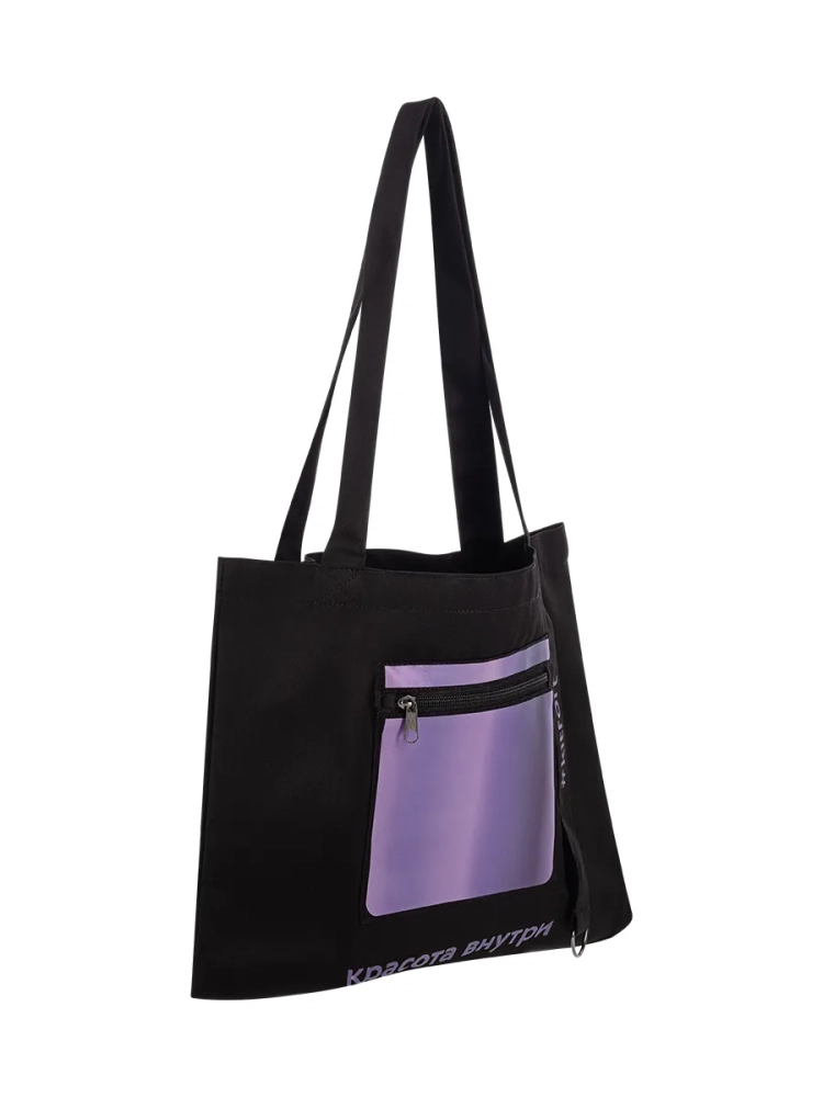 Ткань шоппера состоит на 92% из хлопка и на 8% из полиэстера.Также на шоппере есть карман для мелочей - удобно закинуть туда ключи, наушники и другие мелочи. Цветные вставки выполнены необычной печатью “DTR-Reflect”.