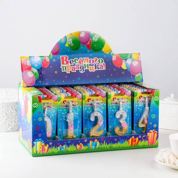 Шоу-бокс со свечами для торта цифры "Сердечки", 10,2 см, 50 штук