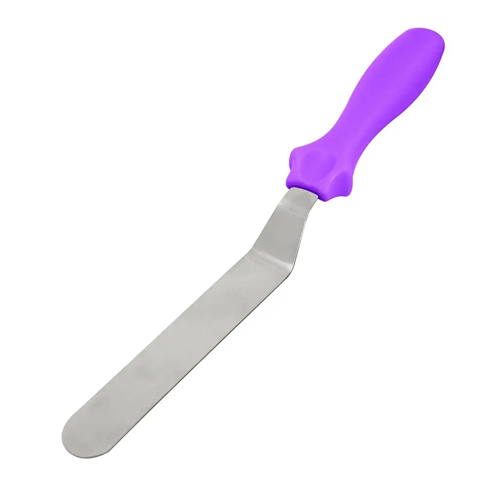 Шпатель применяется для декорирования тортов и выпечки. Это прекрасный инструмент для сглаживания неровностей торта, а также для равномерного нанесения крема, сливок и т.п. на торт. Также пригодится при приготовлении и переворачивании готовящихся блюд, например, блинов, оладий или стейка с мясом! Исключите контакт шпателя с антипригарной поверхностью, во избежание царапин. После использования промойте в проточной воде с жидкими моющими средствами. Изготовлено: рабочая часть из коррозионностойкой (нержавеющей) стали, ручка из пластмассы (полипропилен). Длина 23 см.