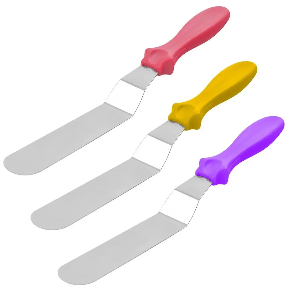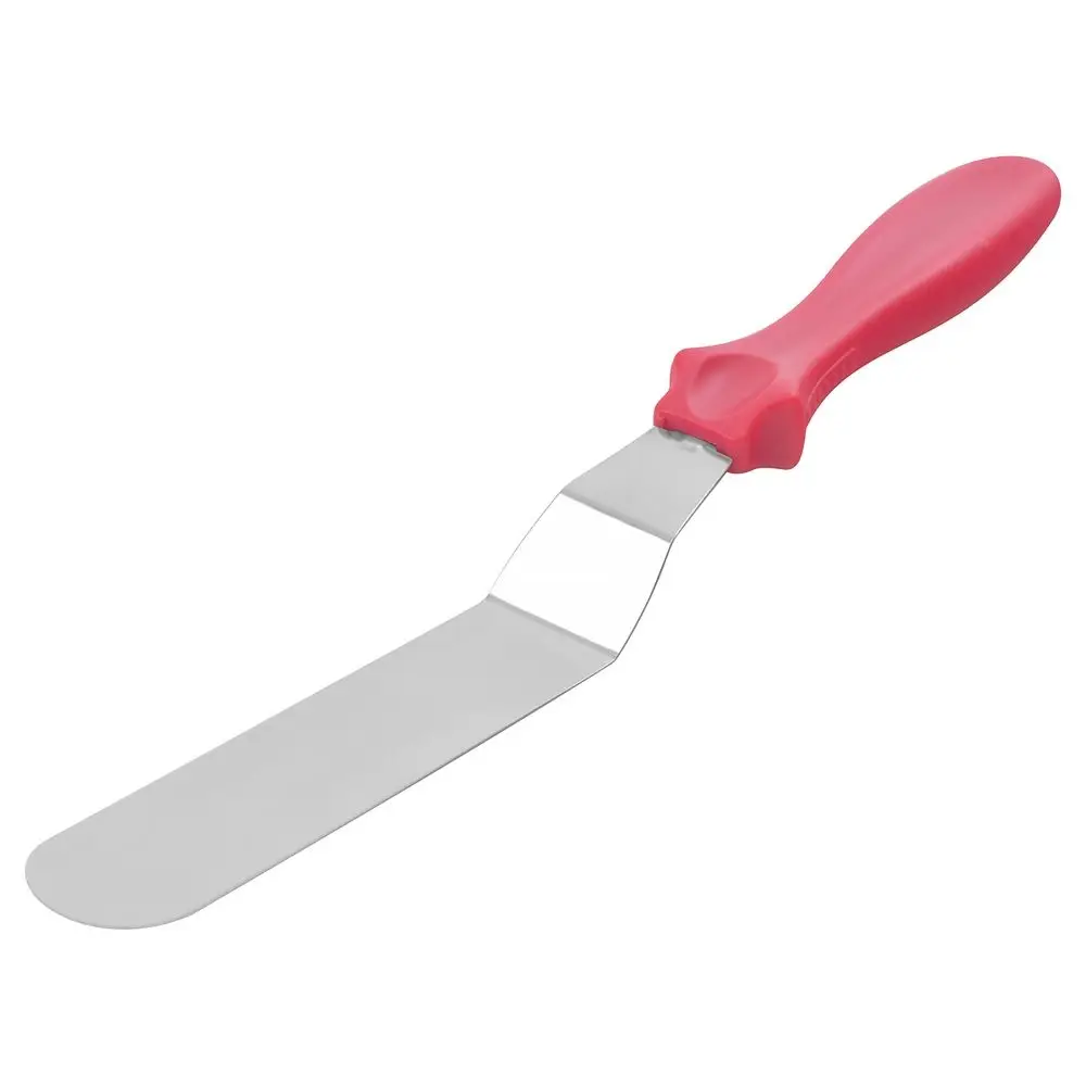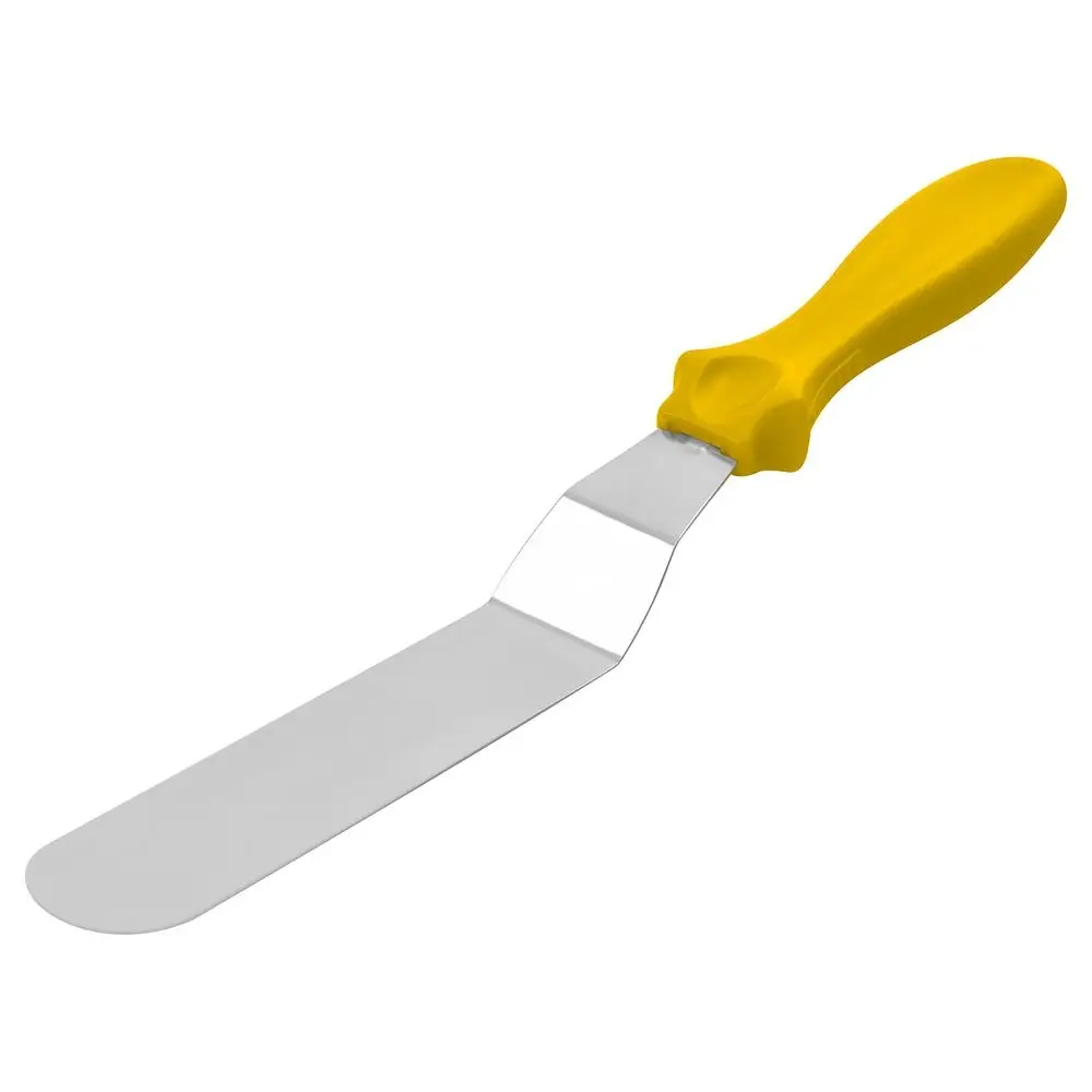 Для декорирования тортов и другой выпечки используется большое количество инструментов. Один из них — кондитерский шпатель, с помощью которого сглаживаются неровности, наносится крем, сливки, шоколад на верх и боковины торта. Также шпатель подойдет для смазывания булочек джемом шоколадом, для нанесения масла на готовые блинчики. Шпатель станет отличным помощником в переворачивании блюд, может заменить собой лопатку во время приготовления блинов, оладий, стейков. Изготовлено: рабочая часть из коррозионностойкой (нержавеющей) стали, ручка из пластмассы (полипропилен).