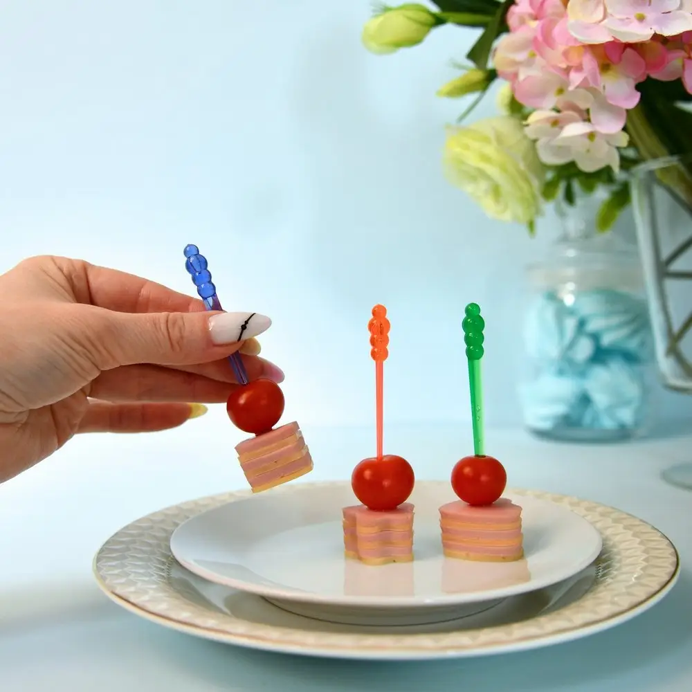 Шпажки для канапе-идеальное решение для праздничного стола. Для фуршетов и вечеринок нет ничего лучше канапе — миниатюрных закусок, нанизанных на шпажки. Фуршетные мини-закуски, приготовленные из овощей, ягод, фруктов, сыров, рыбных и мясных продуктов. На одной стороне изделия расположено острие, на другой декоративный элемент. Канапе нанизываются на шпажки и смотрятся оригинально на праздничном столе. Закуски актуальны не только на фуршете, но и на детском празднике, на вечеринке и как дополнение к банкетным блюдам. Кроме того, такие пики смогут заменить десертные вилочки, с их помощью можно брать небольшие закуски: кусочки сыра, картофель фри, оливки, креветки и т.п. Шпажки предназначены для многоразового использования.