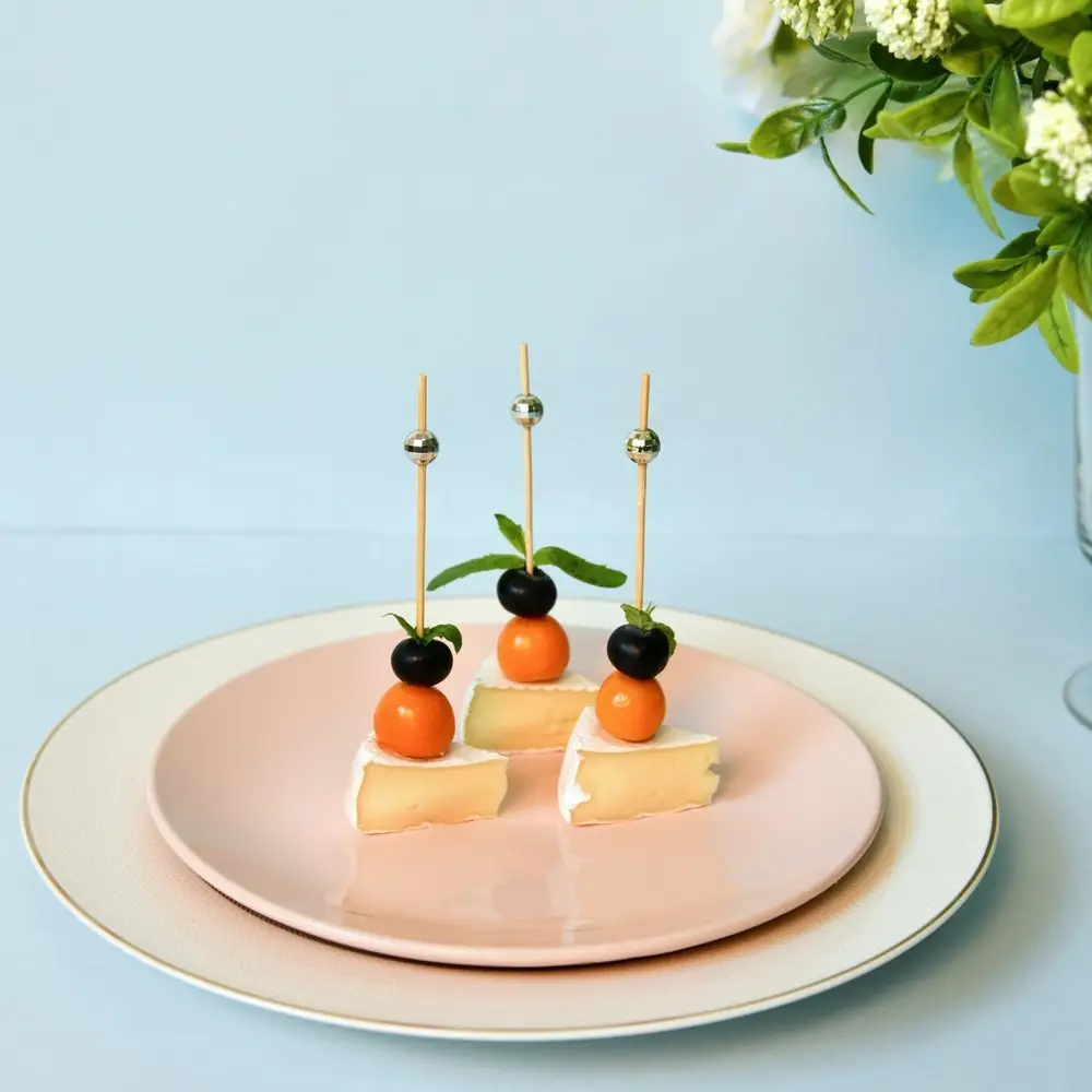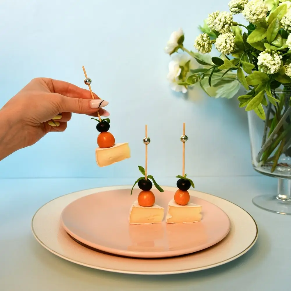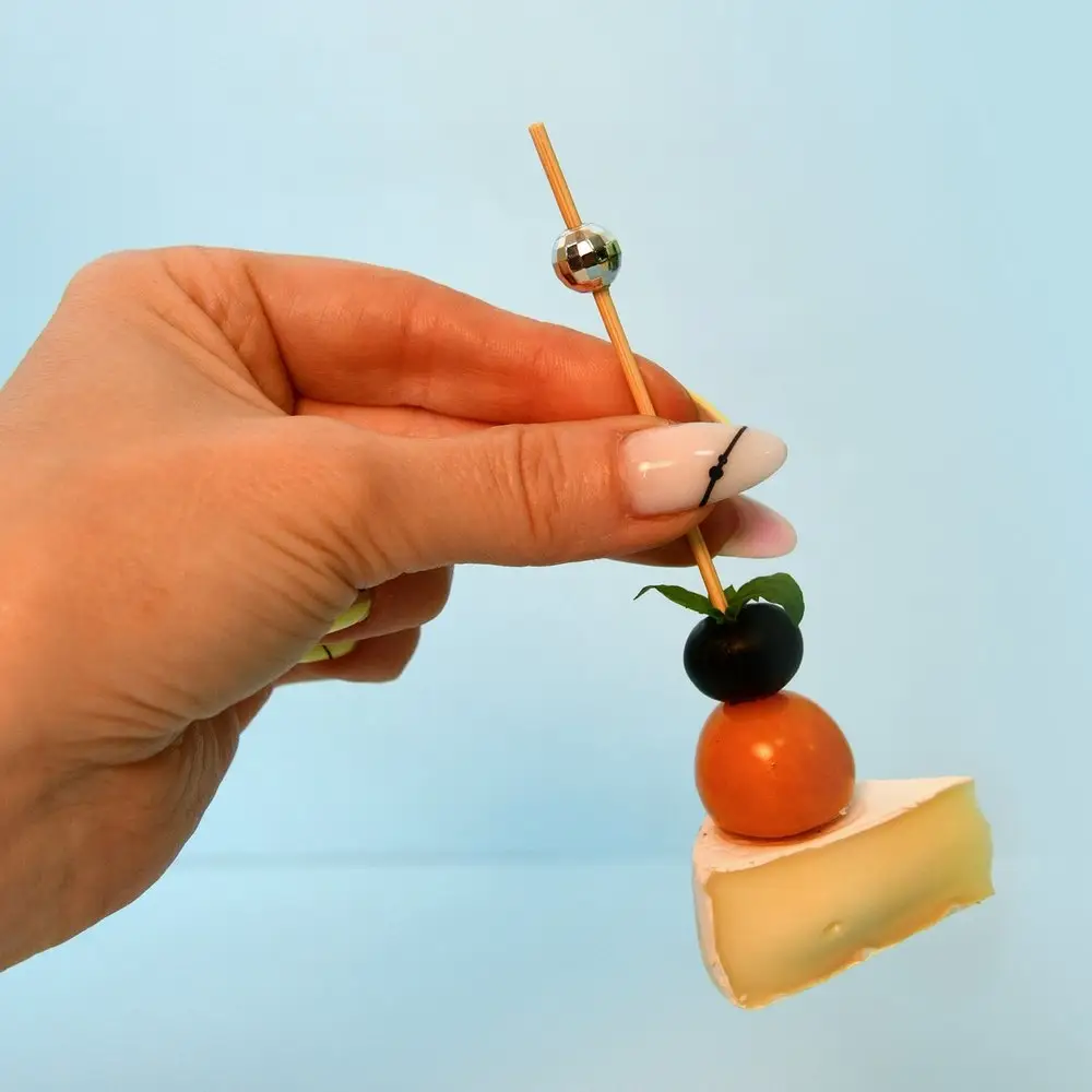 Шпажки используются при сервировке стола многослойными мини-бутербродами (канапе) из овощей, фруктов, ягод, сыров и мясных продуктов. Идеально подходят для фуршетов, вечеринок и праздников. Выбирайте любимые ингредиенты для приготовления порционных блюд, насаживайте их на шпажки и готовьте с удовольствием! Шпажки заменят десертные вилочки на вашем праздничном столе, а оригинальный дизайн поднимет настроение гостям. Шпажки продаются в наборе по 24 штуки, это оптимальный вариант, если вы планируете позвать большое количество гостей. Шпажки предназначены для одноразового использования. Изготовлены из дерева (бамбук), декор из пластмассы (ABS). Общая длина шпажки 12 см.