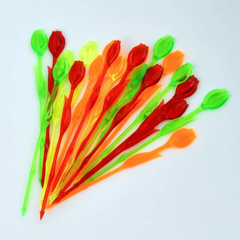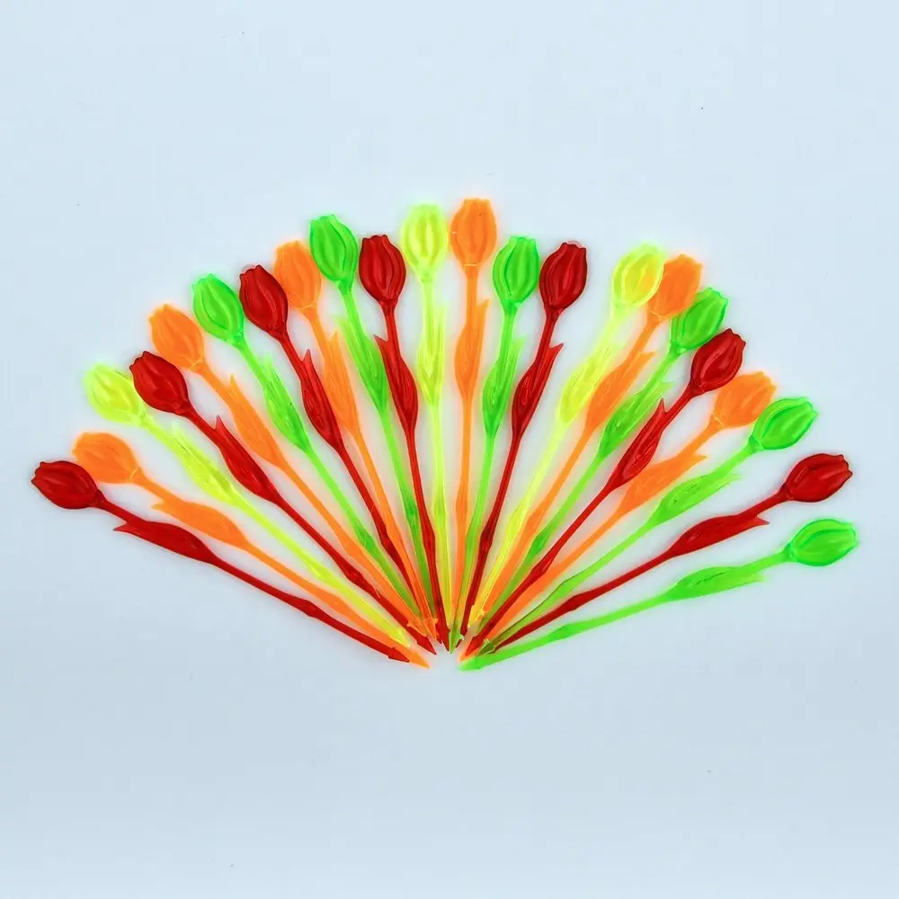 Оригинальные закуски гарантируют успех любой вечеринке! Приготовьте канапе с использованием специальных шпажек — порадуйте себя и своих гостей. Шпажки для канапе «Тюльпаны» — инструмент, с помощью которого вы соберете закуски из кусочков овощей, фруктов, сыра, мяса, хлеба. Используйте пластиковые пики для дегустаций или оформления миниатюрных десертов, с ними блюдо будет смотреться гораздо привлекательнее. Шпажки предназначены для многоразового использования, после применения промойте в проточной воде. Не подвергайте воздействию высоких температур. Изготовлено из пластмассы (полистирол), длина 82 мм.