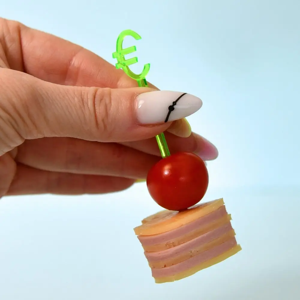 Шпажки удобны для приготовления легких фуршетных закусок — канапе. Цветные шпажки станут не просто скрепляющим элементом для закуски, но украшением вашего стола. Можно также использовать для приготовления рулетиков, проведения дегустаций и угощения оливками или нарезанными сырами. Изделия можно использовать несколько раз, достаточно помыть их в теплой воде. Не подвергайте термической обработке.