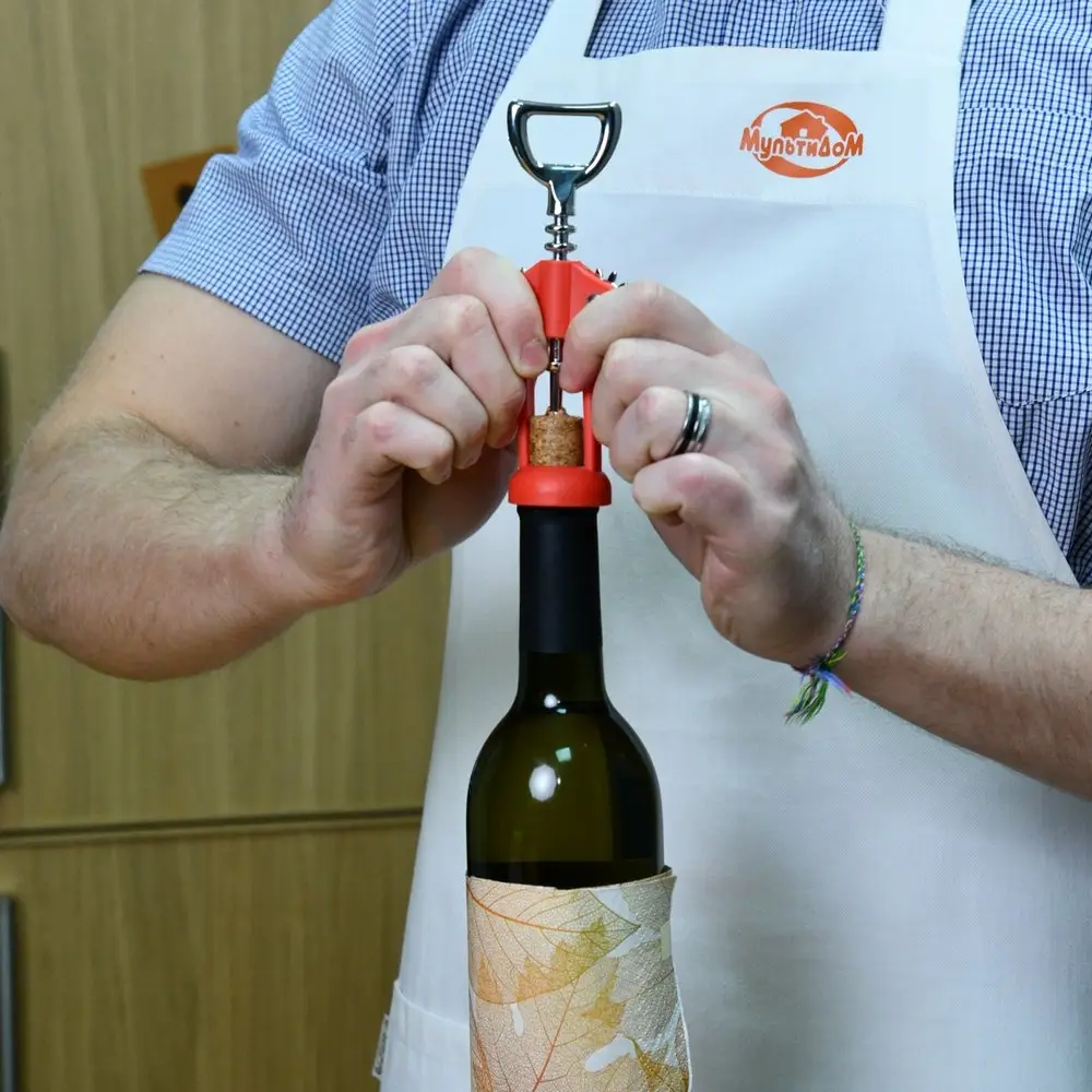 Аккуратно достать пробку из бутылки невозможно без качественного штопора с рычажным механизмом. Изделие позволяет легко открыть любую бутылку, достаточно вкрутить винт и зафиксировать нижнюю часть на горлышке. В процессе вкручивания рычаги будут подниматься вверх, после чего их нужно опустить вниз, чтобы достать пробку. Изделие имеет прочный пластмассовый корпус и рабочую часть из металла с хромированным покрытием.