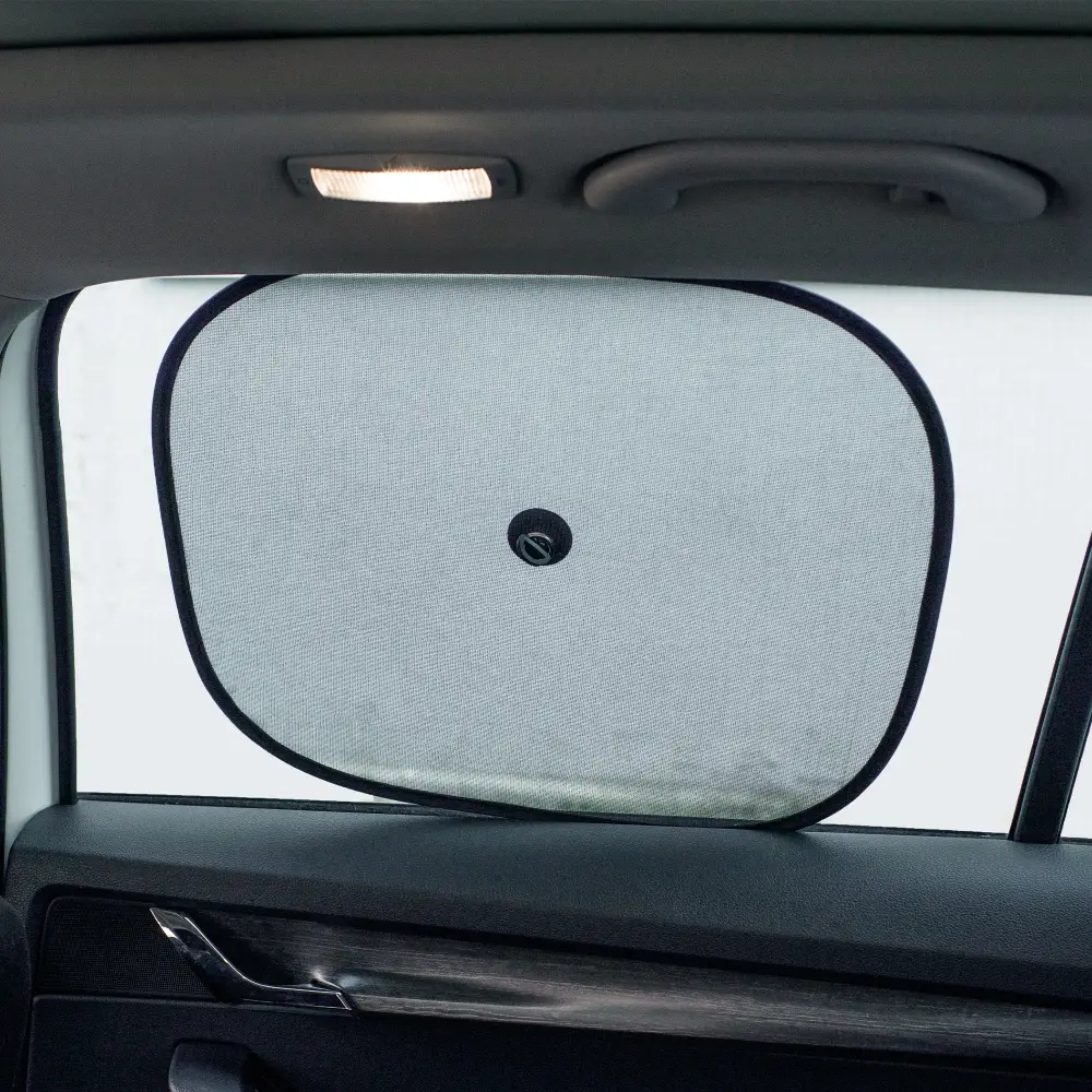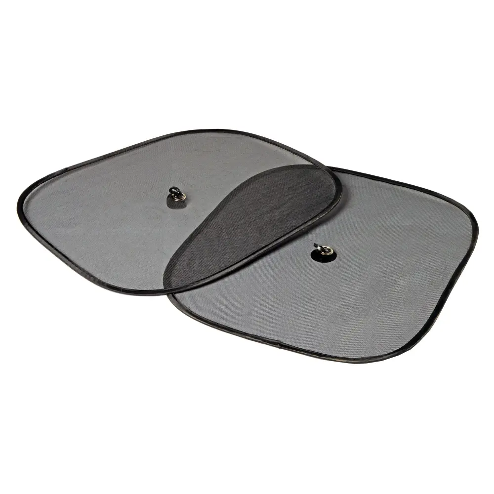 Солнцезащитные шторки черного цвета из полупрозрачной сетки имеют размер 44х36см и являются бюджетным и надежным вариантом, чтобы снизить уровень попадания солнечных лучей в салон автомобиля. Шторки помогут увеличить степень удобства при передвижении пассажиров в авто. Кроме того, постоянная защита салона от солнца позволит сохранить первоначальный вид автомобильных сидений и защитить их от потери цвета. Шторки крепятся с помощью присосок на боковые стекла машины.
