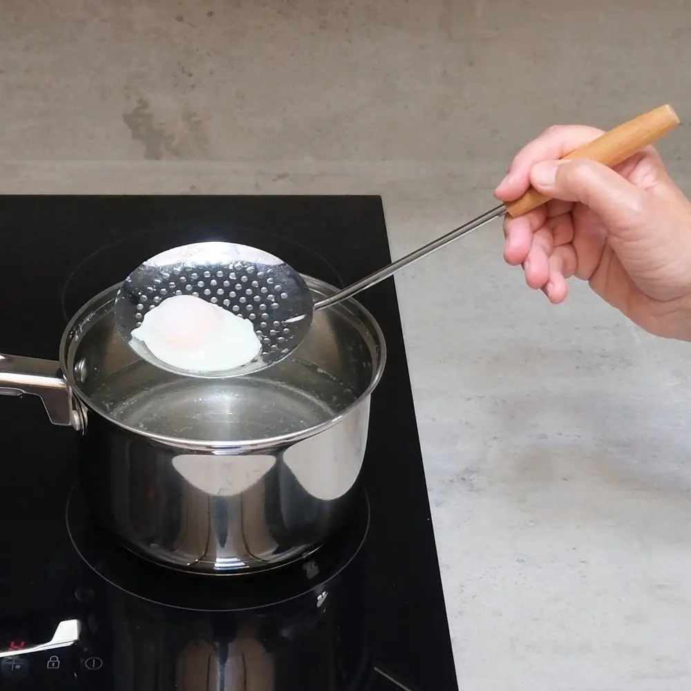 Используется для снятия пенки с готовящихся первых блюд, а также варенья. Изготовлено: рабочая часть из хромированной стали, ручка из дерева.