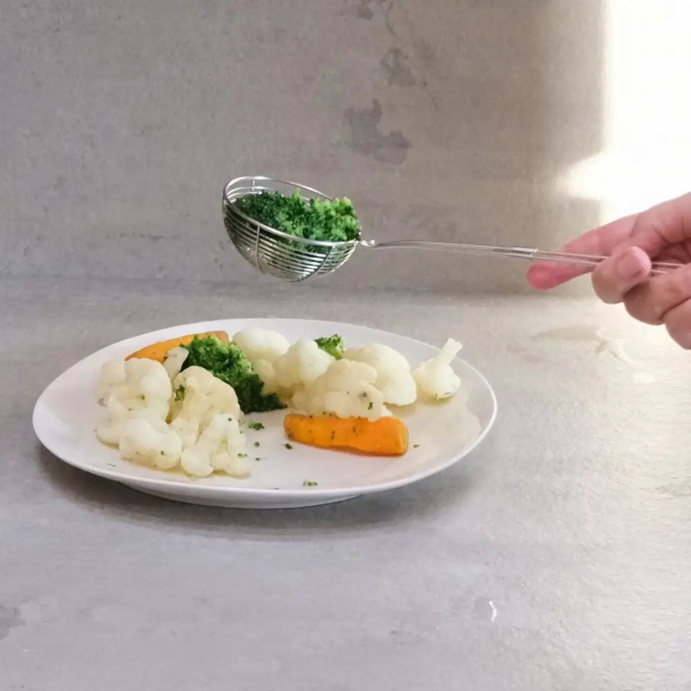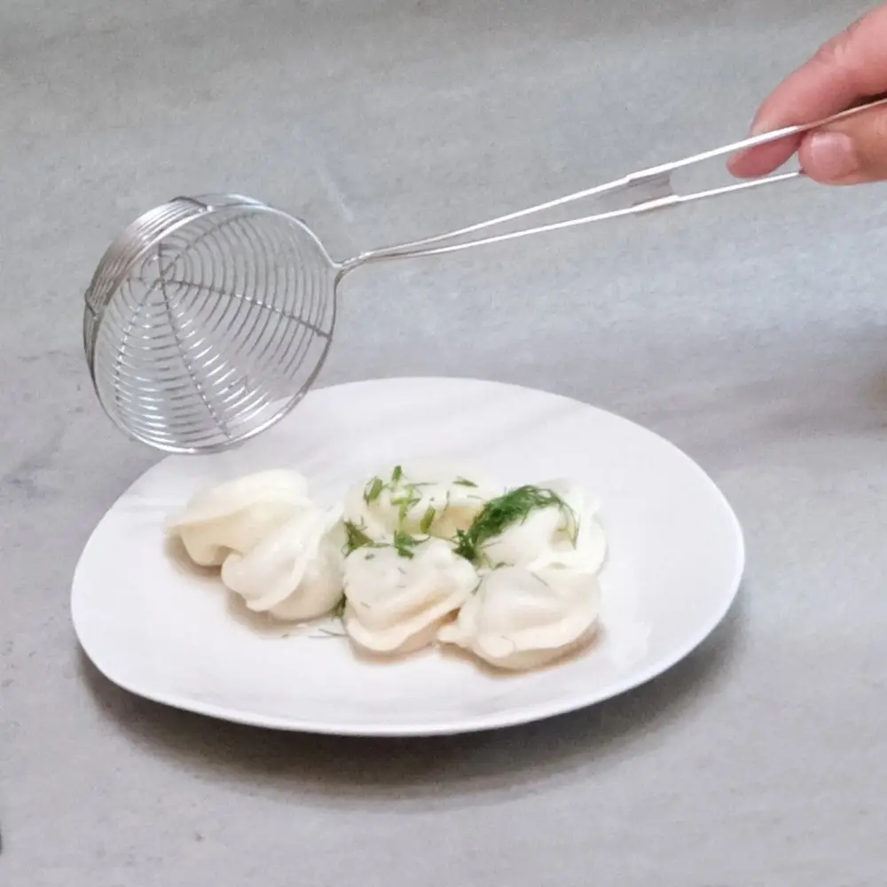 Шумовка — обязательное для кухни приспособление. С ее помощью снимается пенка с готовящихся бульонов, варенья и других блюд. Шумовка станет идеальным инструментом для жарки картофеля фри, луковых колец, фрикаделек и приготовления любых блюд во фритюре. Также шумовка будет удобна при порционном раскладывании пельменей, вареников, некрупных овощей и т. п.