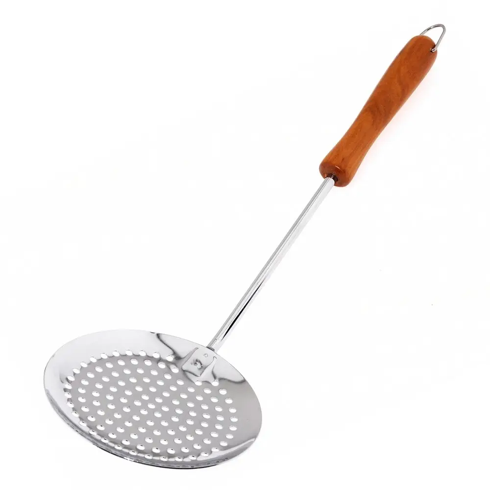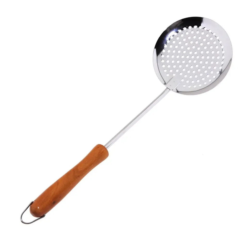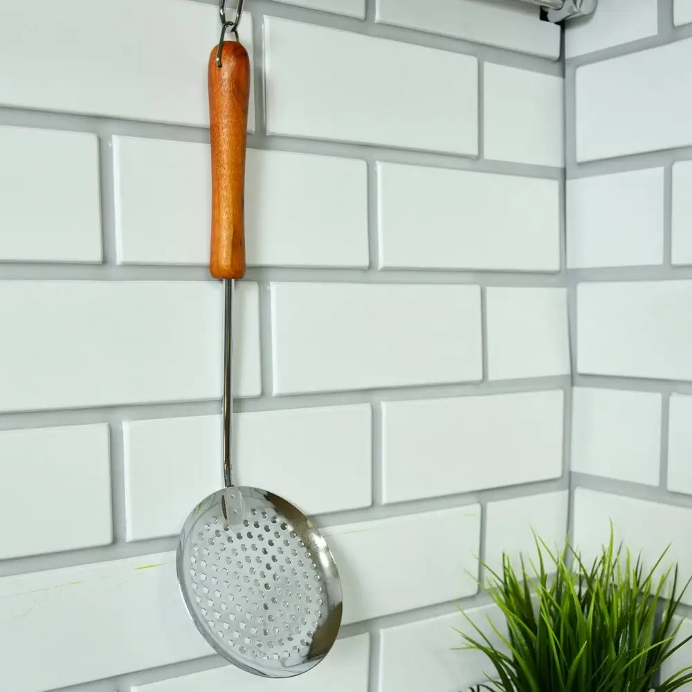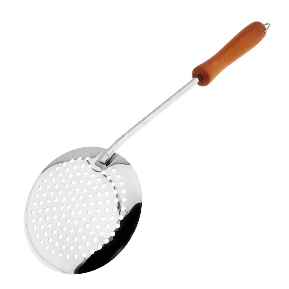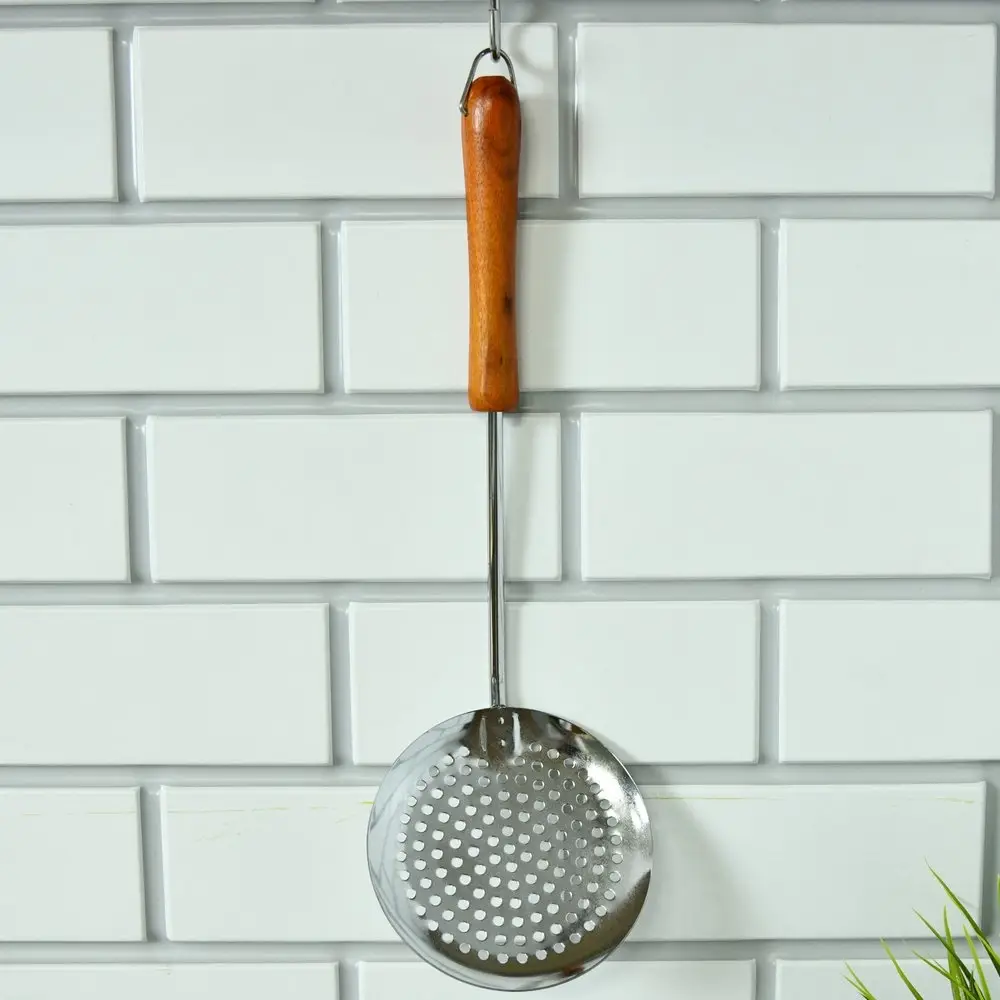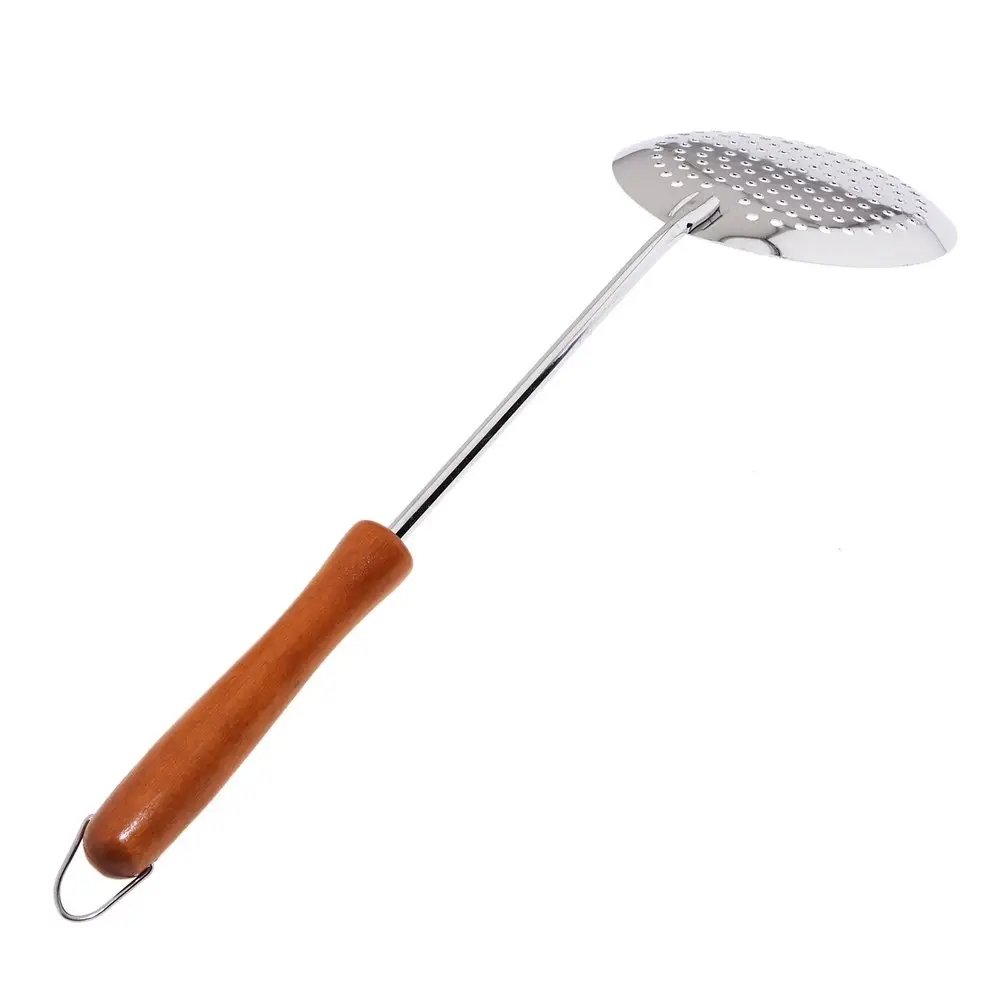 Используйте для снятия пенки надежную шумовку от «Мультидом», которая очень удобна при варке бульонов и варенья. Рабочая часть выполнена из хромированной стали, что гарантирует устойчивость к высоким температурам. Деревянная ручка обеспечивает комфорт использования, не нагревается и исключает ожоги. Довольно большая рабочая часть подходит не только для снятия пенки, но и для порционного раскладывания пельменей, вареников, вареных овощей и других блюд. Ручка оснащена металлической петелькой для удобства хранения на крючке. После использования вымойте изделие с жидкими моющими средствами.