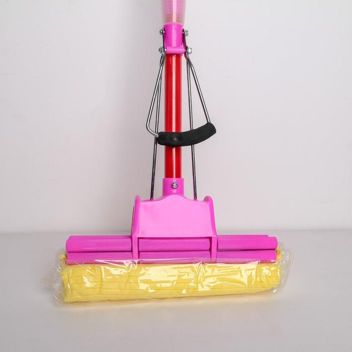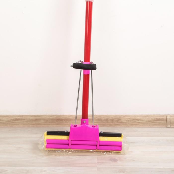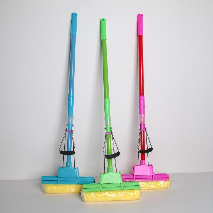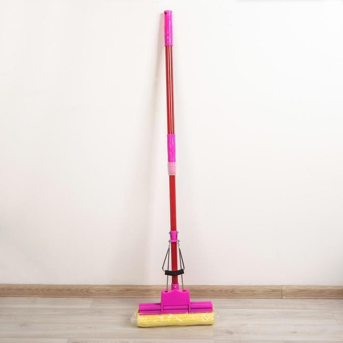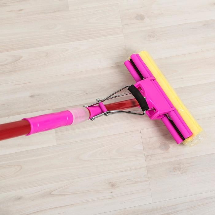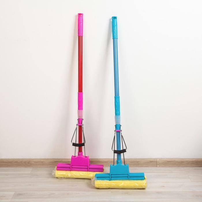 Швабра для мытья пола с двойным роликовым отжимом Доляна, насадка ПВА 28×6 см, телескопическая ручка 96-119 см, цвет МИКС