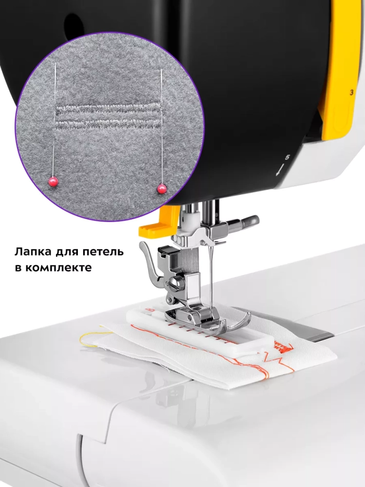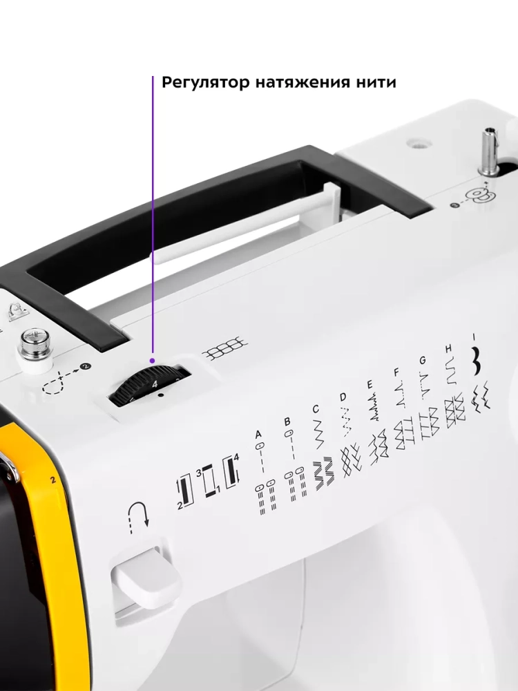 У швейной машинки есть небольшая складная ручка для переноски.