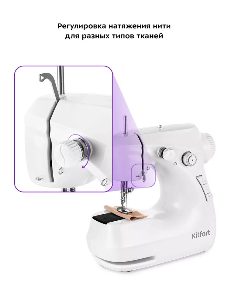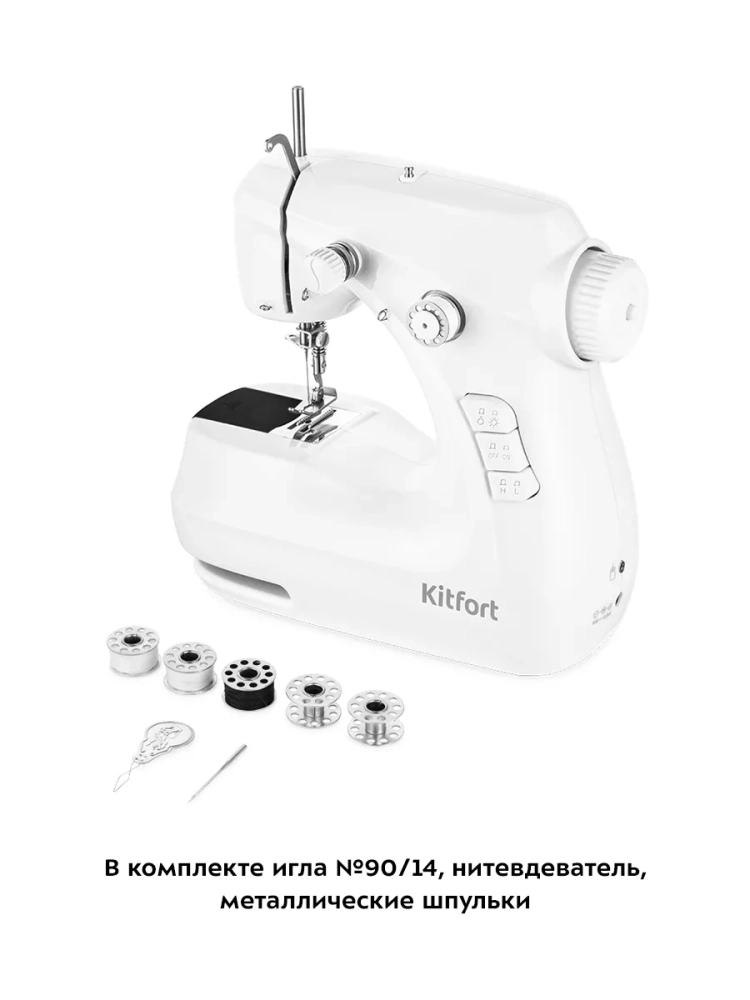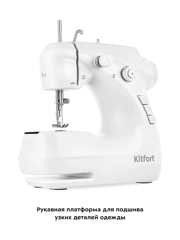 Швейная машина Kitfort КТ-6048 оснащена рукавной платформой, на которой удобно обрабатывать узкие детали одежды, например, манжеты рукавов.