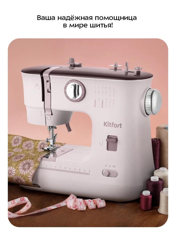 Kitfort КТ-6801 — это компактная электромеханическая швейная машина, у которой есть оптимальный набор функций для пошива и ремонта одежды и изделий из текстиля. Швейная машина небольшая и легкая, она не займет много места при транспортировке и хранении.