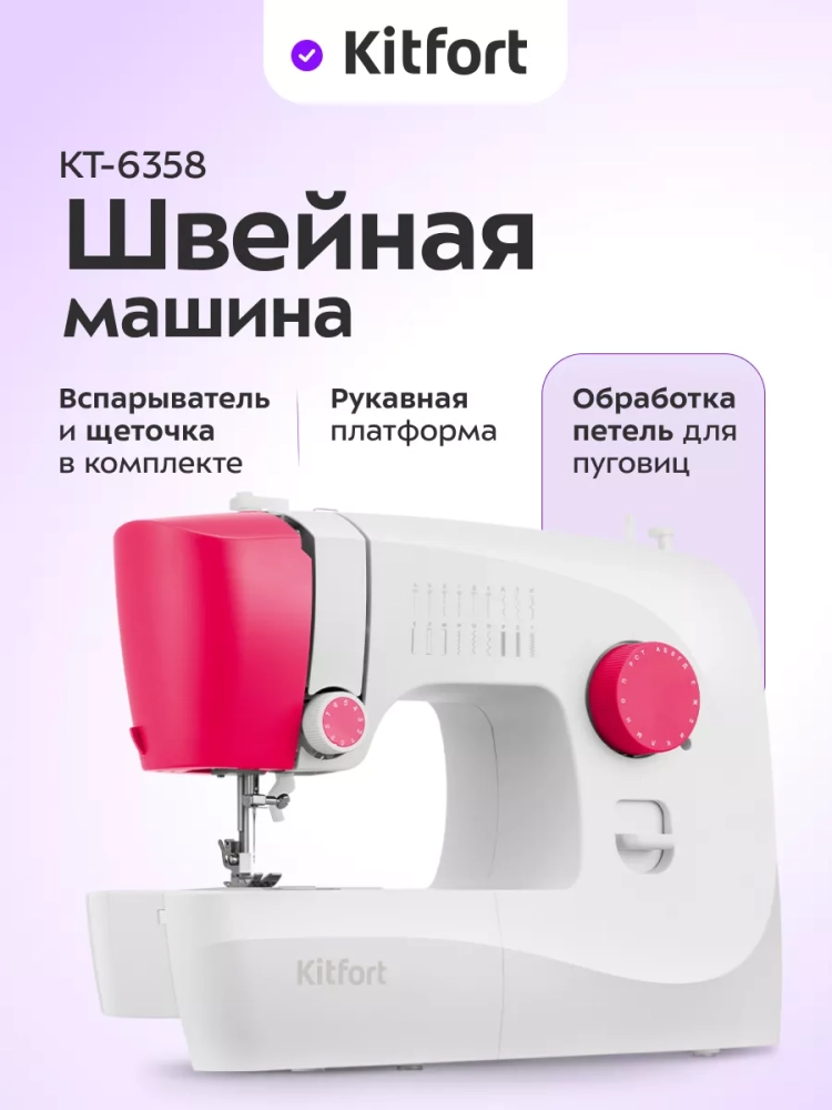 КТ-6358 — это современная электромеханическая швейная машина, у которой есть оптимальный набор функций для пошива и ремонта одежды и изделий из текстиля.