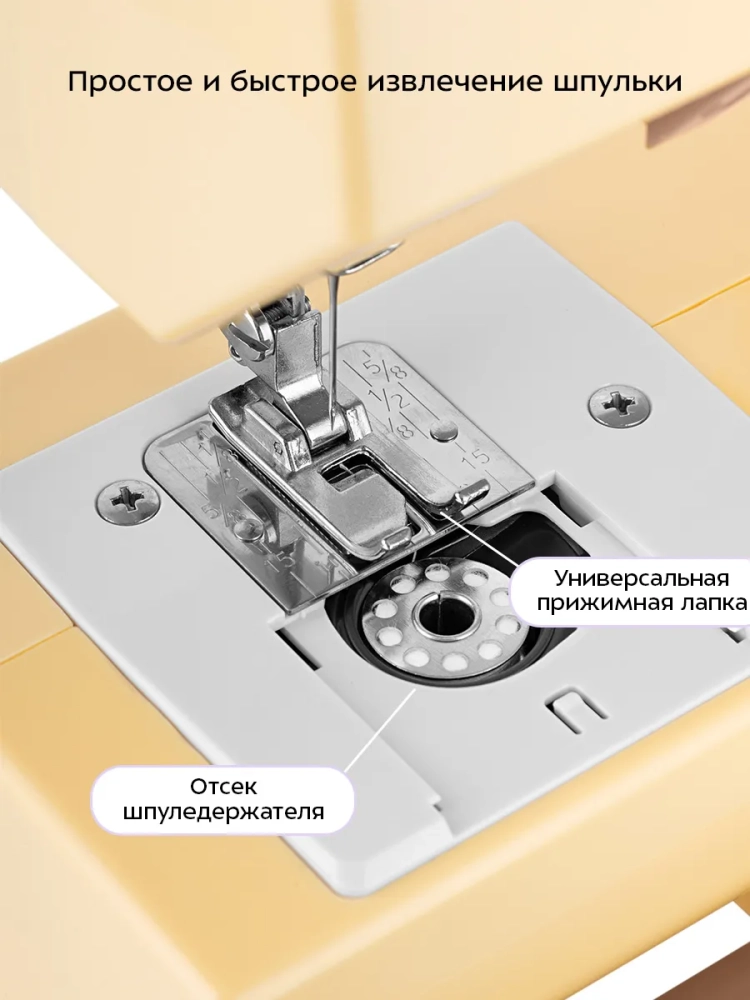 Данная швейная машина отличается простым, интуитивно понятным управлением, позволяющим работать с ней как опытным швеям, так и новичкам в шитье. Технические характеристики модели позволяют выполнять различные прямые и декоративные строчки, строчки зигзаг, а также строчки для обработки петель для пуговиц. У устройства есть реверсный ход при шитье. Скорость работы прибора можно регулировать с помощью ножной педали, а также можно установить высокую или низкую скорость шитья в автоматическом режиме. Благодаря подсветке рабочей поверхности глаза меньше устают во время работы.
