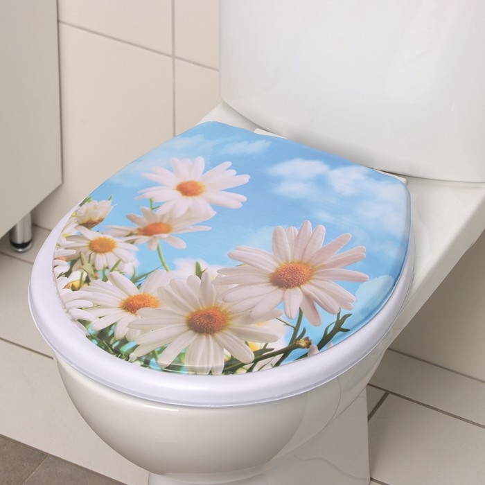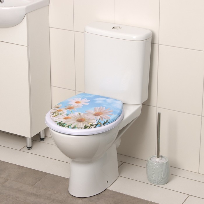 Сиденье для унитаза с крышкой Доляна «Ромашки», 42×36,5 см