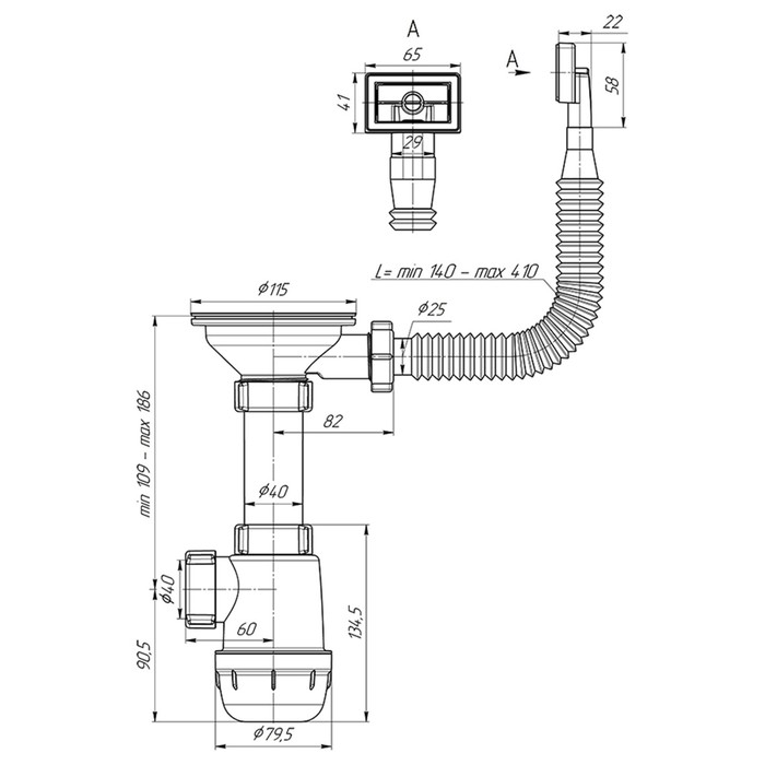 Вид трубки сифона
