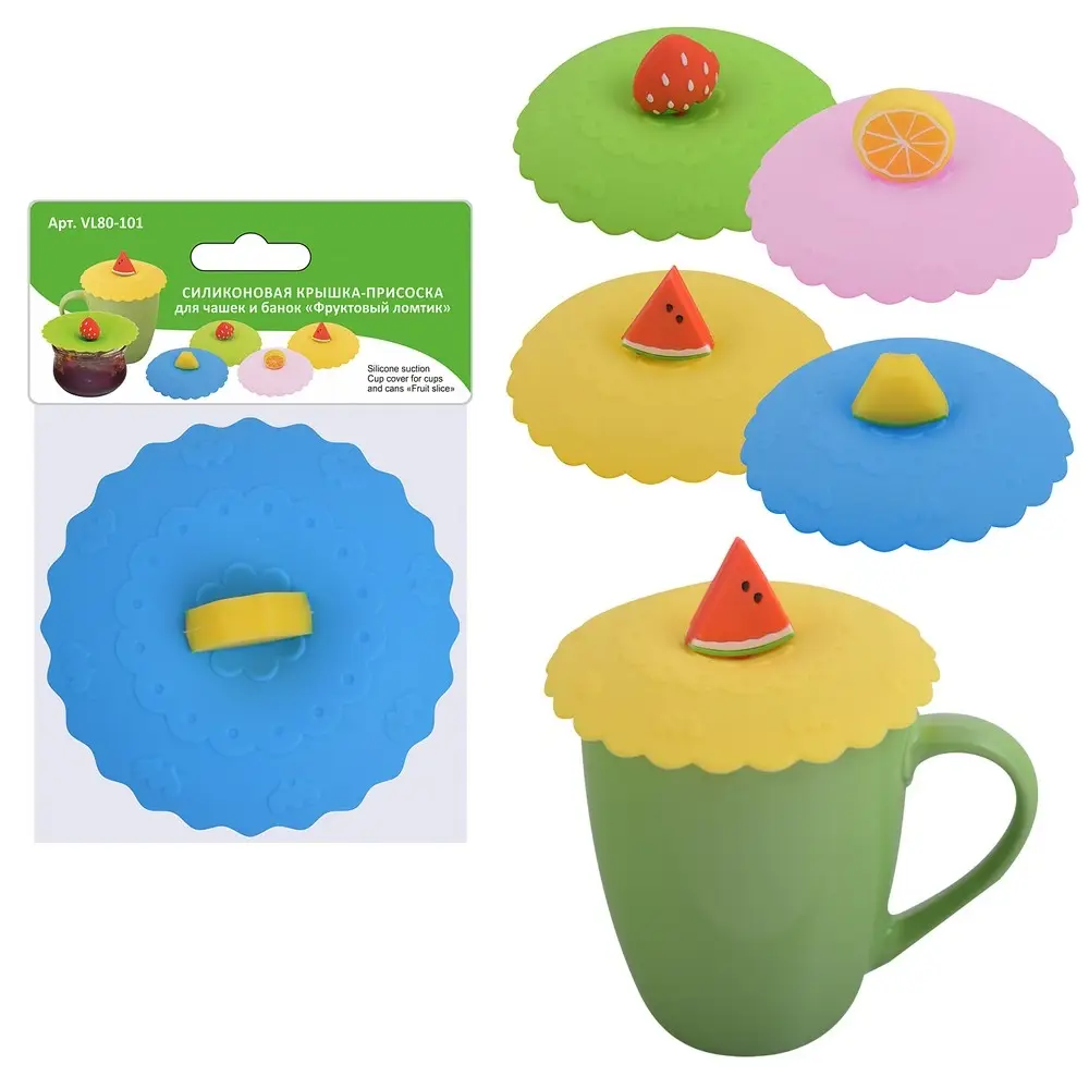 Силиконовая крышка присоска для чашек и банок Фруктовый ломтик (ассортимент)