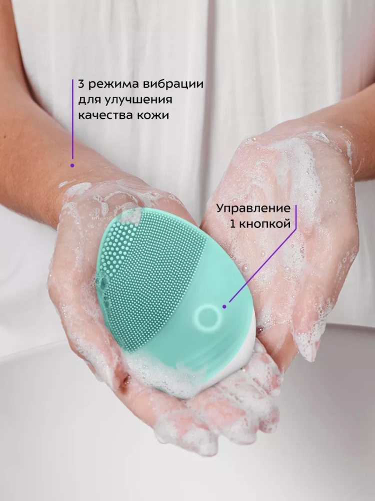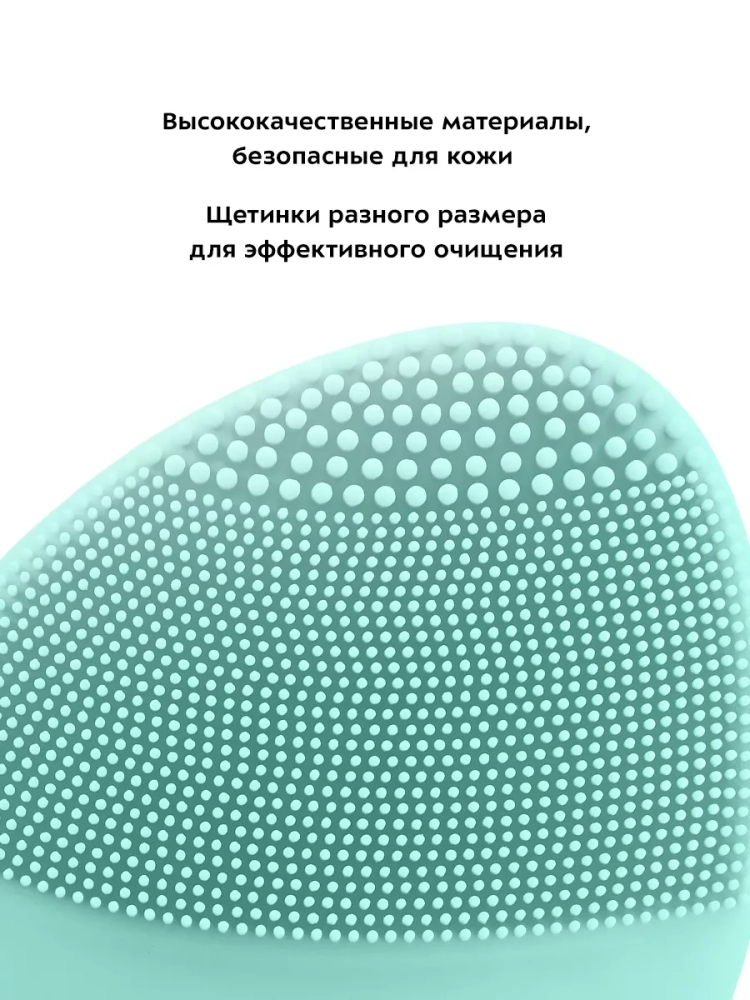 Корпус щетки выполнен из силикона. Рабочая поверхность прибора не травмирует кожу, быстро сохнет, легко очищается после использования. Благодаря эргономичной форме корпуса прибор удобно держать в руке.