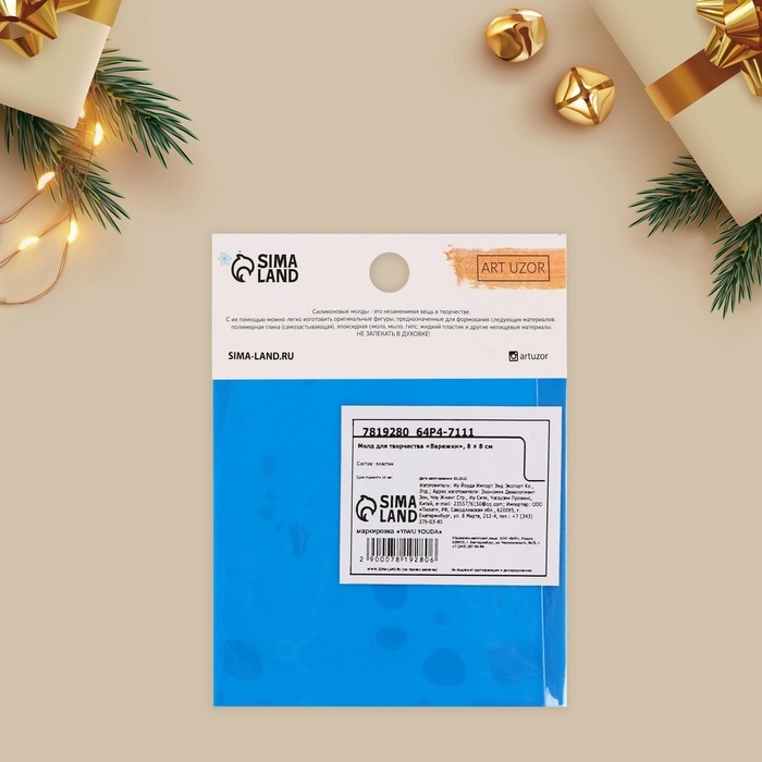 Силиконовый молд для творчества «Варежки», 8 х 8 см
