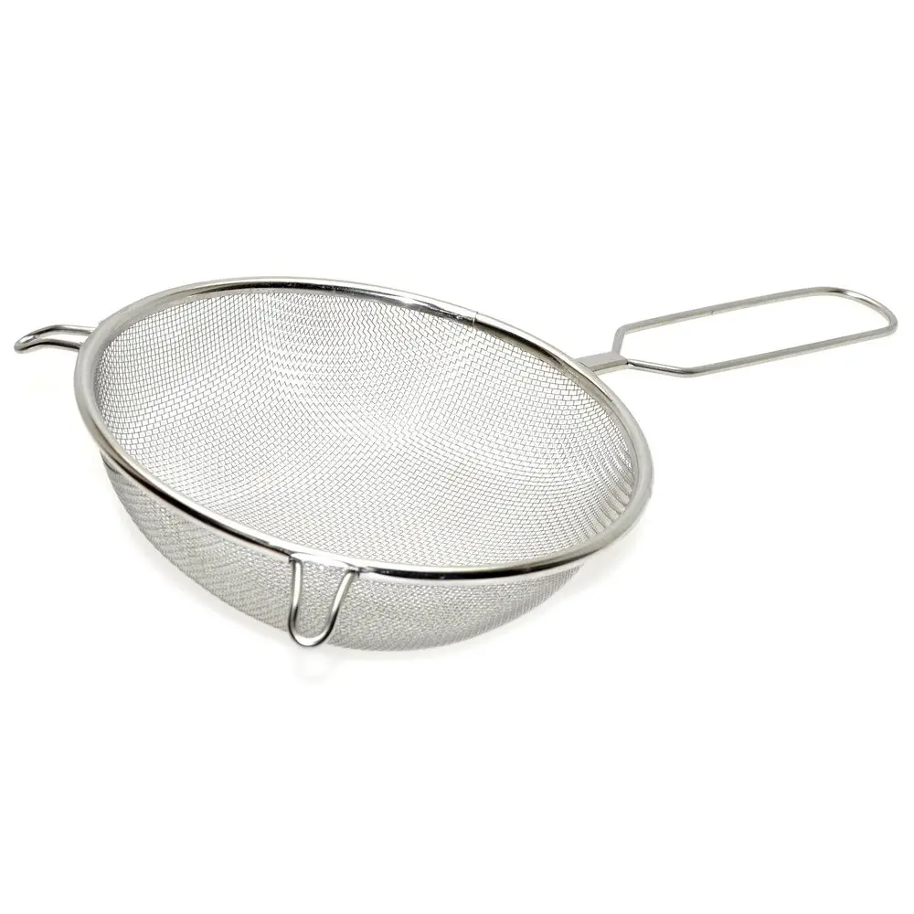 Сито всегда пригодится в хозяйстве, с его помощью можно процедить чаи, компоты, отвары трав, слить макароны. Модель диаметром 18 см подойдет также для промывания овощей и фруктов под краном. Изделие имеет простую конструкцию, состоит из мелкоячеистой сетки, ободка и ручки, изготовлено из нержавеющей стали. Материал долговечен, не ржавеет и не деформируется со временем, не вступает в реакцию с продуктами питания, поэтому изделие прослужит вам очень долго. На ободке имеются петельки, которые фиксируют сито на кастрюле или миске. Ручка выполнена таким образом, что за нее можно подвесить на крючок.