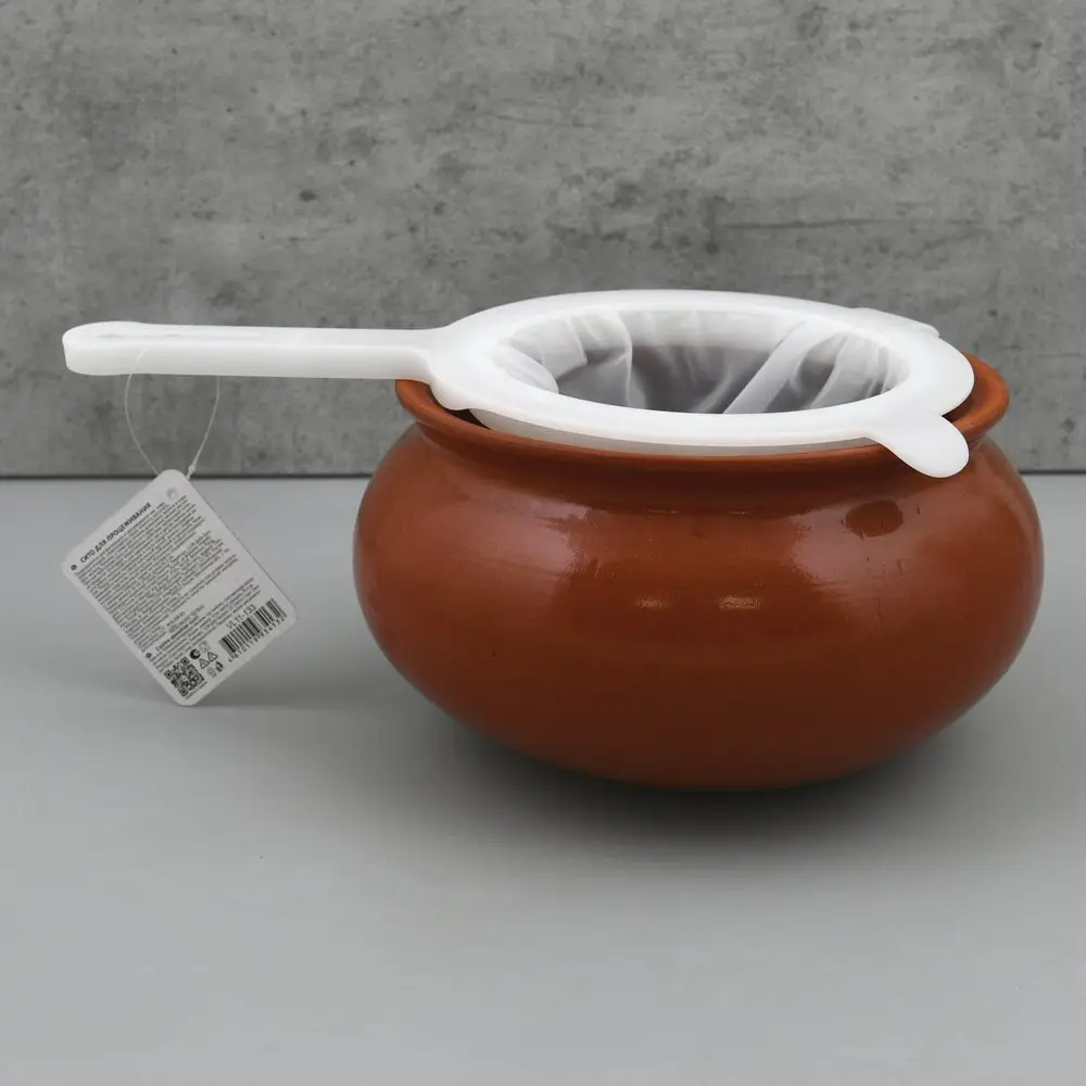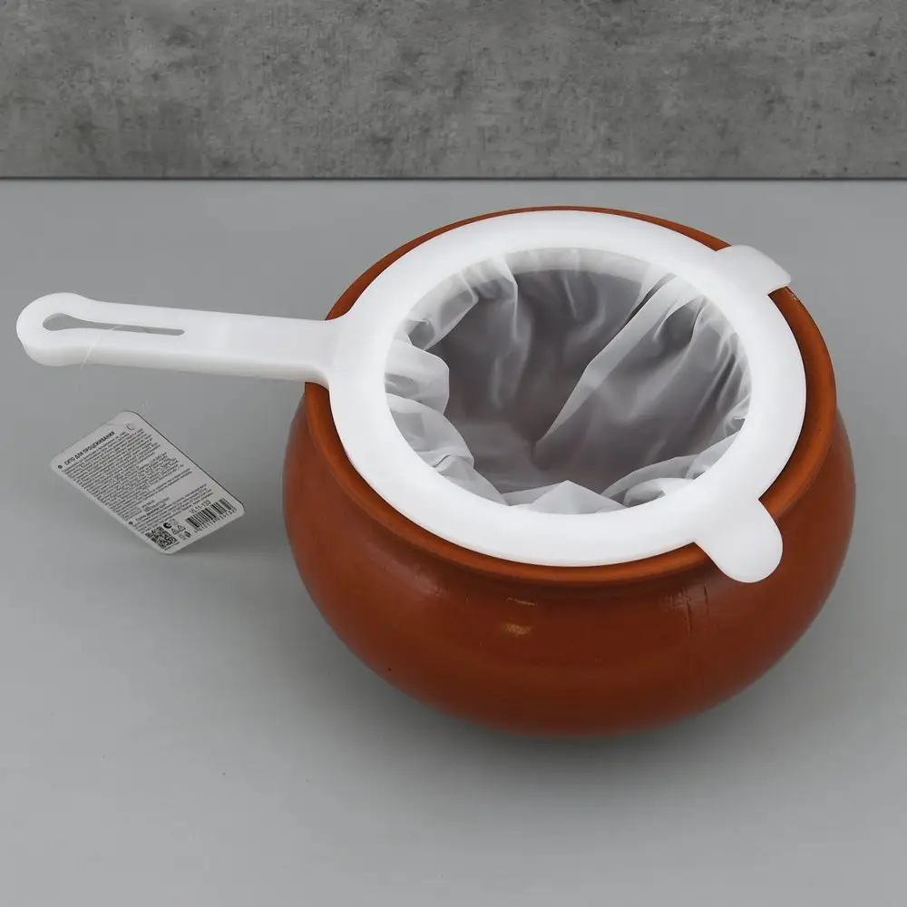 Предназначено для фильтрации и процеживания чая, кофе, травяных отваров, свежевыжатых соков, компота, растительного молока, бульона, а также для отжима домашнего творога и сыра. Прочная нейлоновая сетка не пропустить даже самые мелкие частички продуктов. Благодаря термостойким свойствам нейлоновой сетки, сито можно использовать для заваривания чая и других горячих напитков. Перед первым применением и после каждого использования рекомендуется вымыть губкой или мягкой щеткой, можно с жидким моющим средством, сполоснуть проточной водой и просушить. Можно мыть в посудомоечной машине.