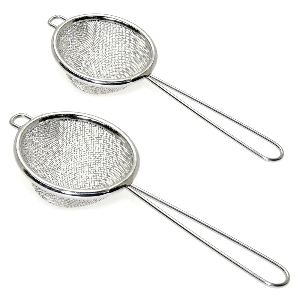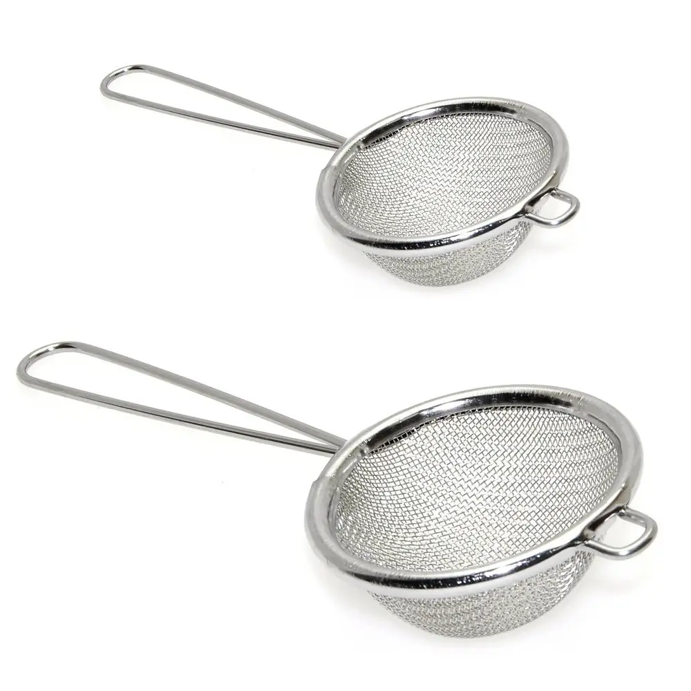 Набор ситечек пригодится для самых разных целей: процедить компоты, отвары трав, морсы, чаи, промыть ягоды. Небольшие диаметры изделий позволяют процеживать жидкости прямо в кружку, например, готовить напитки из ягод для детей. Ситечки удобно хранить на крючке, ручка выполнена в виде петли. Сита изготовлены из стальной сетки с хромированным покрытием. Размер: диаметры 5 и 7 см.