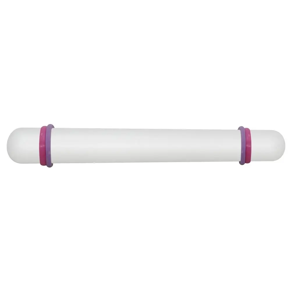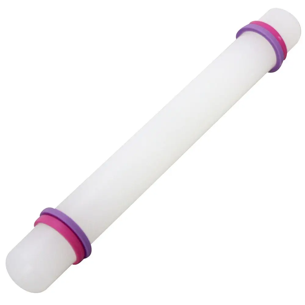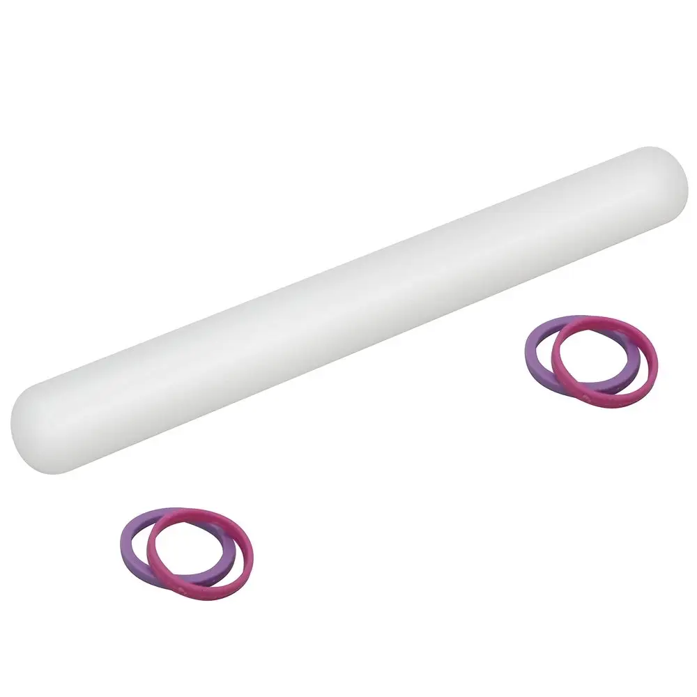Компактное и удобное изделие не занимает много места при работе или хранении. С помощью этой скалки можно раскатать тесто или мастику толщиной 0,15 и 0,30 см. Приспособление просто в уходе, гигиенична, легко моется с использованием жидких моющих средств. Изготовлено из пластмассы (полипропилен, РОМ). Длина 23 см, диаметр 2,5 см.