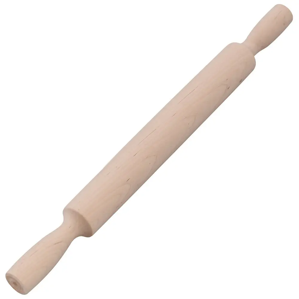 Универсальная классическая деревянная скалка с ручками для раскатки и приготовления теста сделает этот процесс приятным и увлекательным. Изготовлено: дерево (береза). Размер: общая длина 40 см, длина рабочей части 23,5 см