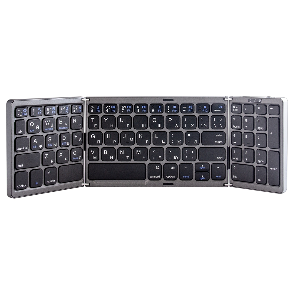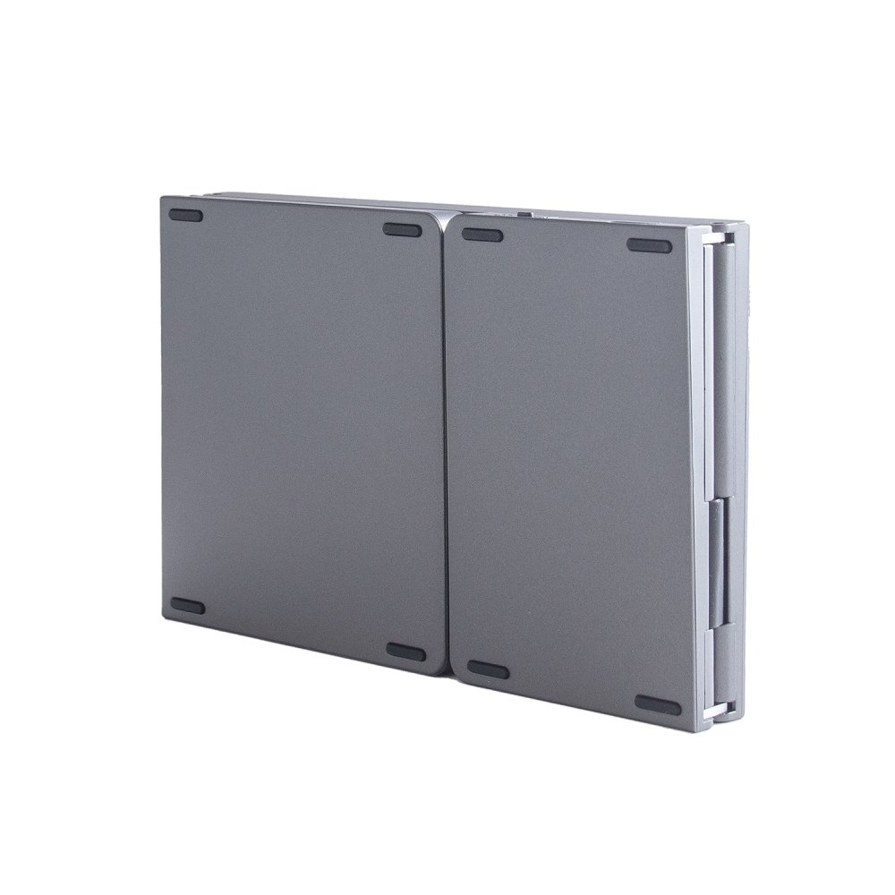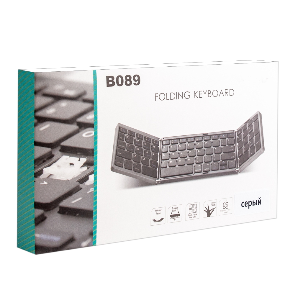 Складная беспроводная клавиатура B089 - это компактное и стильное решение для комфортного набора текста на смартфонах, планшетах и ПК. Благодаря складной конструкции (размер в сложенном состоянии всего 152×98х15 мм) она легко помещается в карман или небольшую сумку, при этом раскладывается в полноразмерную клавиатуру с удобными клавишами стандартного размера, к тому же имеет силиконовые подкладки на задней части, чтобы клавиатура не скользила. Подключается по Bluetooth 5.0 к 3 устройствам одновременно (iOS/Android/Windows), имеет встроенный аккумулятор объёмом 140 мАч для автономной работы. Стильный серый корпус из алюминиевого сплава делает эту клавиатуру не только функциональным, но и эстетичным аксессуаром для работы в дороге или дома.