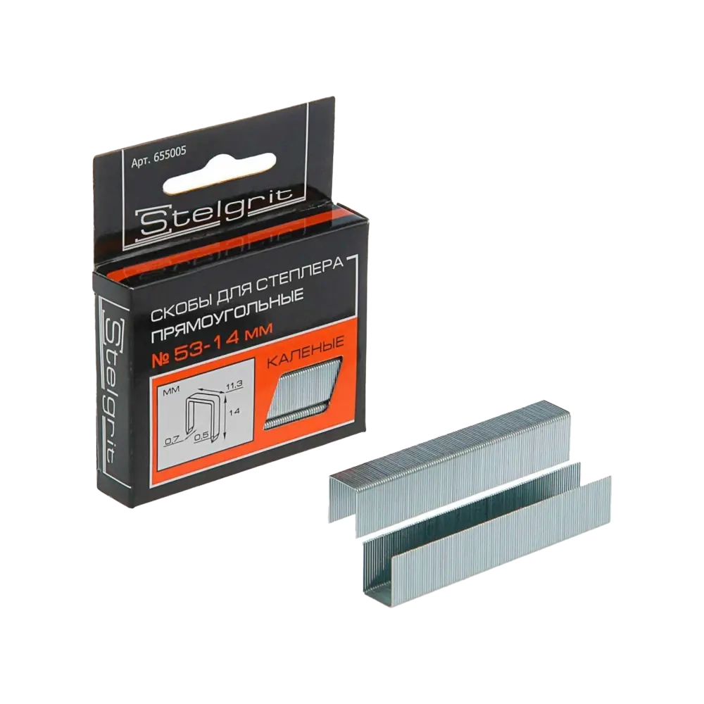 Скобы для мебельного степлера каленые Stelgrit 14 x 0,7 мм (тип 53) 1000 шт