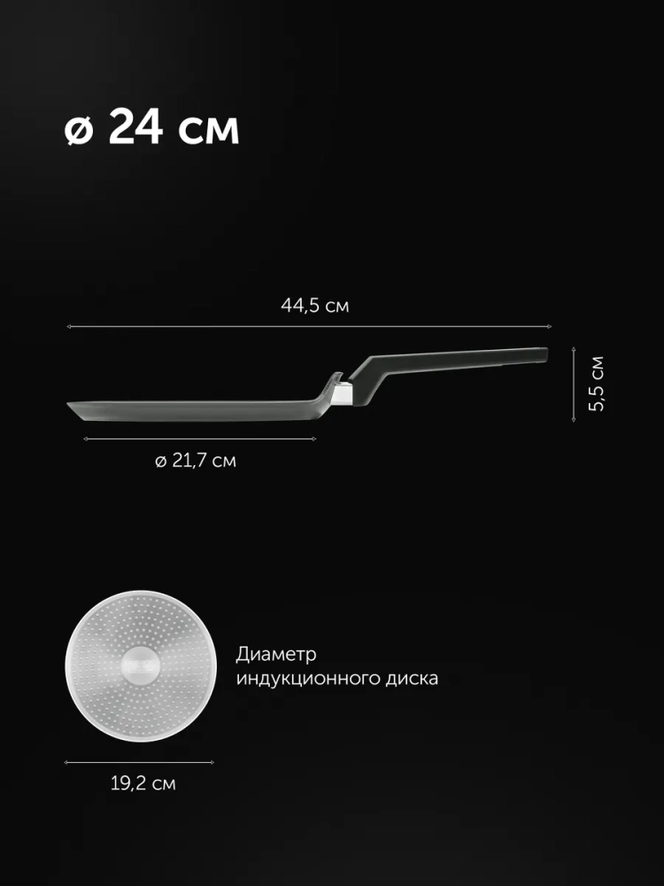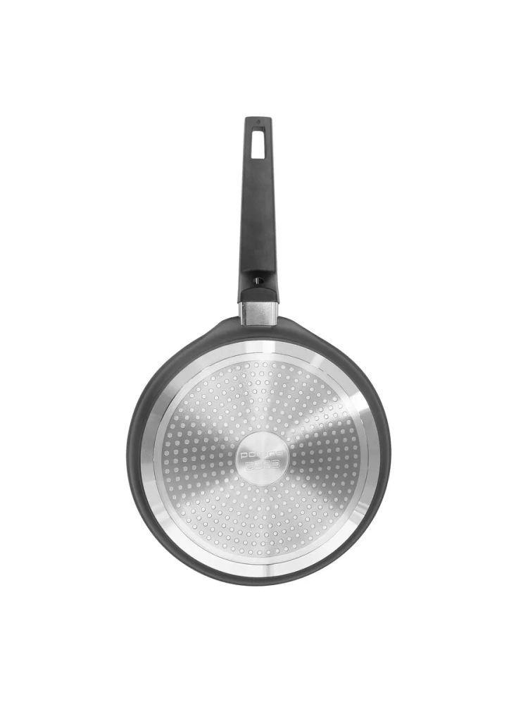 Блинная сковорода Polaris Graphit-24PC - мечта для каждой кухни! Изделие изготовлено из высококачественного кованого алюминия, благодаря чему обладают большей теплопроводностью, чем нержавеющая сталь. Инновационное антипригарное покрытие сковороды состоит из 3 слоев с добавлением серебра SILVER PROTECT, что обеспечивает прочность покрытия и устойчивость к царапинам. Эргономичная бакелитовая ручка с покрытием SOFT TOUCH, не нагревается во время приготовления пищи, что позволяет держать сковородку крепким и надежным хватом и не обжечься. Корпус из алюминиевого сплава обеспечивает быстрое и равномерное распределение температуры, а также сохраняет тепло и аромат блюд, намного дольше, чем штампованная посуда. Универсальный диаметр 24 см идеально подходит для жарки разнообразных блюд: воздушных блинов, яичницы, омлета и нежнейших панкейков. С блинницей Polaris вам больше не потребуется специальная оладница для создания красивых и ровных оладий/ (Обращаем ваше внимание, что крышка в комплект не входит). Профессиональная сковорода Polaris может использоваться на всех типах плит: индукционные, электрические, керамические, газовые и галогенные. Благодаря своей маленькой и компактной форме, она легко помещается на кухонном столе. Лёгкий вес блинницы из кованого алюминия является одним из основных преимуществ перед чугунным изделием. Модель Graphit-24PC не требует особого ухода, легко моется как вручную, так и в посудомоечной машине.