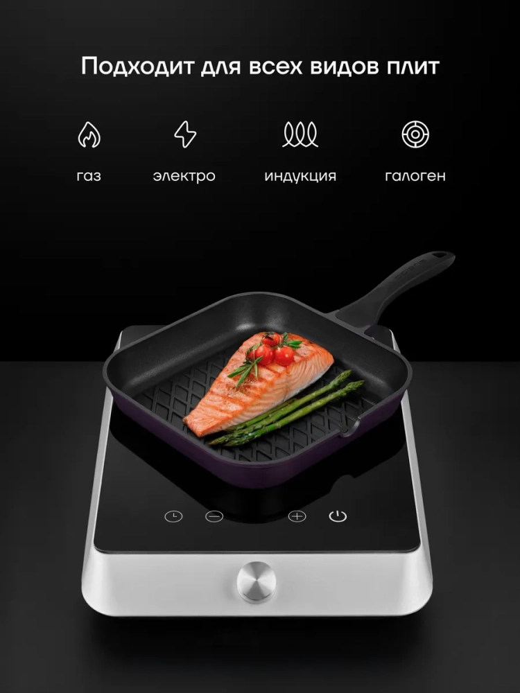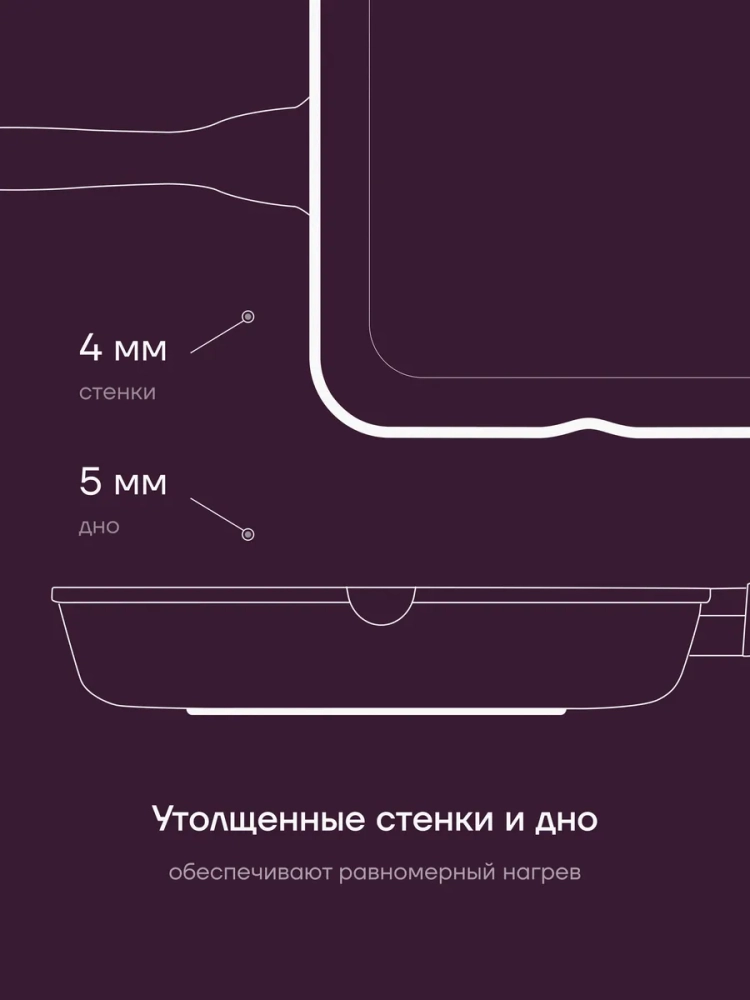 Эргономичная ручка из бакелита с покрытием Soft-touch не нагревается и не скользит, что обеспечивает безопасность при использовании, в отличие от пластиковых ручек и ручек из нержавеющей стали. Универсальная большая сковорода Поларис (диаметр 28 см) подходит для индукционных, газовых, электрических и керамических плит. Это отличный выбор для любой кухни!