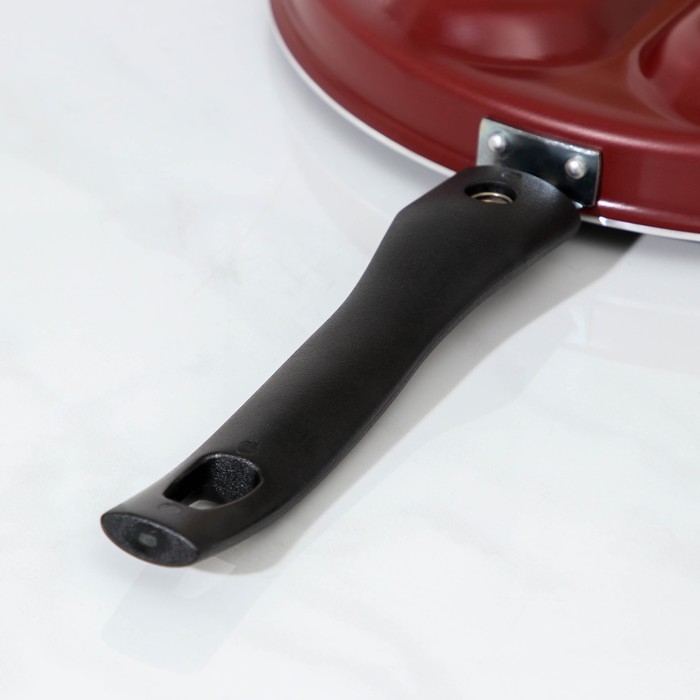 Аккуратные оладьи или воздушные блинчики в виде сердечек — теперь вы сможете вызывать восторг каждым своим блюдом, а сковорода Happy Heart, d=26 см, пластиковая ручка, антипригарное покрытие, цвет бордовый поможет вам в этом.