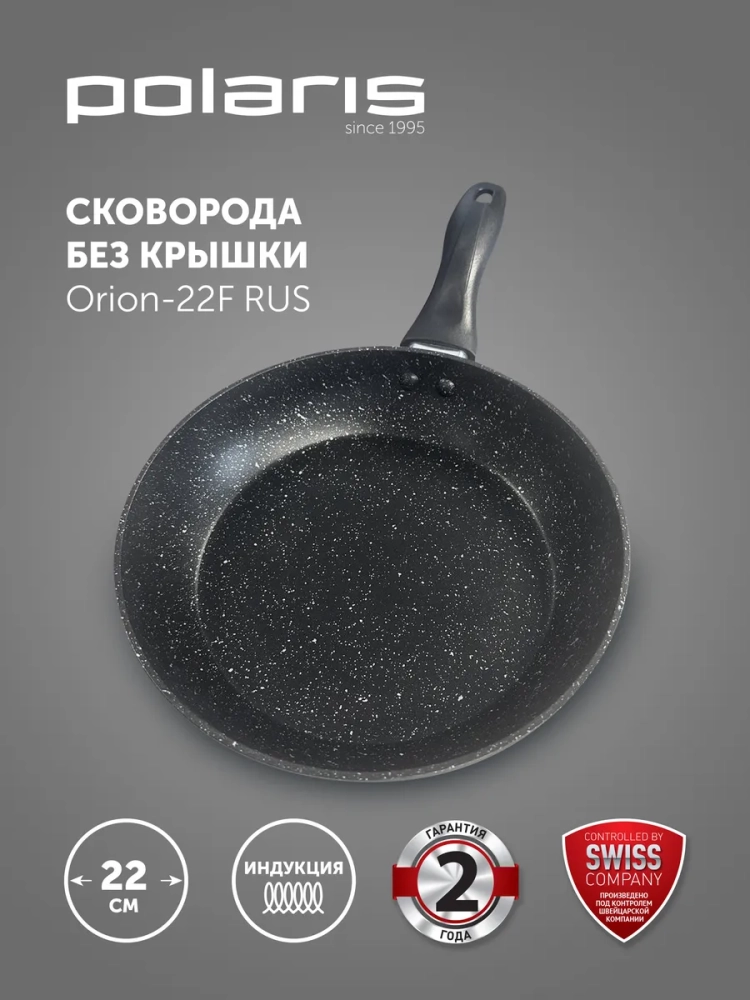 Polaris Orion-22F - это универсальная сковорода, которая создана в соответствии с последними тенденциями и требованиями к профессиональной современной посуде: