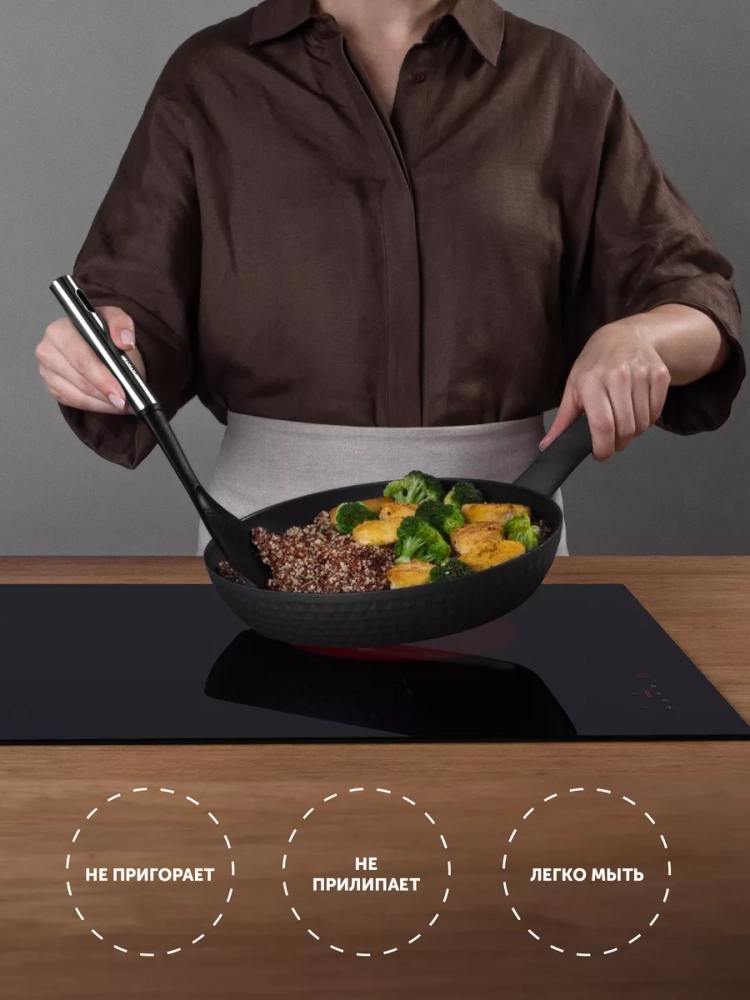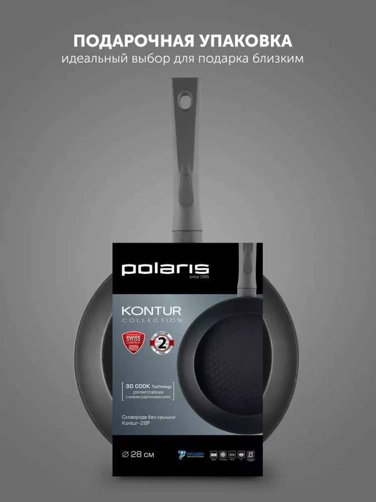 Бренд Polaris представляет коллекцию сковород без крышки Kontur 28F, разработанных совместно с европейскими инженерами и соответствующих европейским сертификатам качества. Мы стремимся предоставлять продукцию с лучшими эксплуатационными характеристиками по доступной цене, чтобы улучшить вашу жизнь и здоровье. Гарантия на нашу сковороду составляет 2 года. Изготовленная из высококачественного кованного алюминия, наша сковорода полегче, чем чугунные или литые аналоги, и в то же время имеет лучшие эксплуатационные характеристики. Данная посуда равномерно прогревается и долго сохраняет тепло, а также подходит для любого типа плит, включая индукционные. Внутренняя поверхность сковороды обладает инновационной рельефной 3D COOK Technology, которая устойчива к царапинам и износу, а также равномерно распределяет масло. Благодаря этому продукты не пригорают и сохраняют свою натуральную свежесть и вкус. Отныне с помощью Polaris вы сможете воплотить в жизнь самые сложные кулинарные рецепты - от обжарки мяса до приготовления десертов. Наша сковорода безопасна для здоровья, снабжена эргономичной бакелитовой ручкой с покрытием SOFT TOUCH, что предотвращает скольжение и перегрев ручки. Благодаря удобному размеру диаметром 20 см, наша сковорода идеально подходит для готовки различных блюд как для большой, так и для маленькой семьи. Кроме того, поларис предлагает большой выбор походной кухни и аксессуаров для туризма, среди которых сковорода диаметром 20 и 24 см. Также у нас вы найдете сковородки с крышкой и сковородки со съемной ручкой, идеально подходящие для использования на индукционных плитах. Не ограничивайте возможности своей кухни и дома - выберите оригинальный подарок от Polaris, который порадует как начинающего повара, так и профессионала. Покупайте наши товары со скидками и акциями в официальном магазине Polaris. С нашей продукцией вы получите гарантию качества и соответствия описанию.