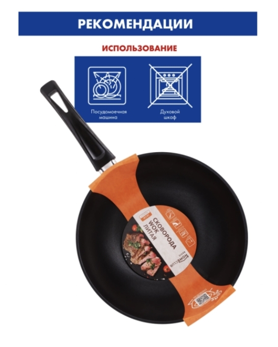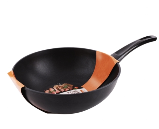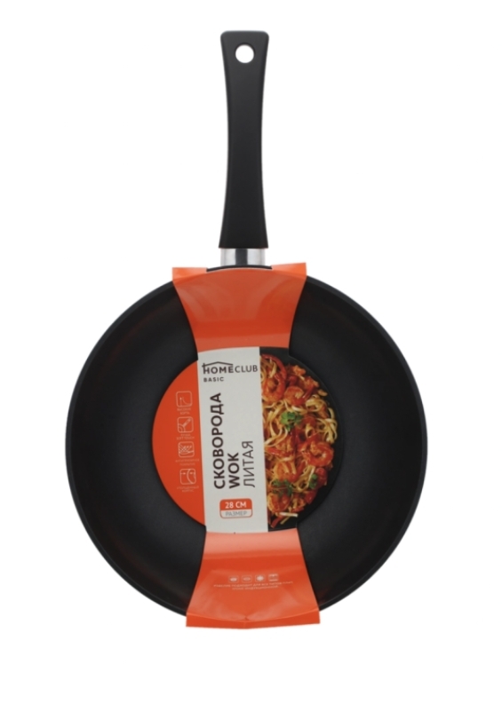 Сковорода Вок HOMECLUB Basic 28см литая, ручка soft-touch