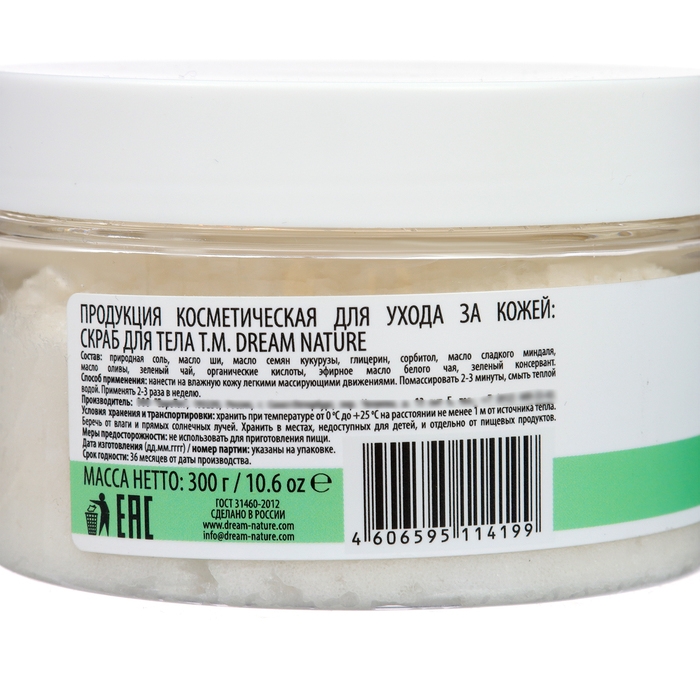 Скраб для тела естественное сияние DREAM NATURE зеленый чай, 250 г