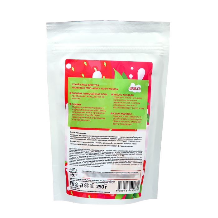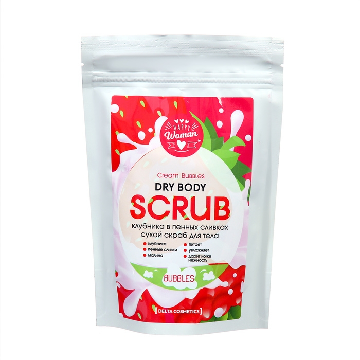 Сухой скраб клубника в пенных сливках Happy Woman