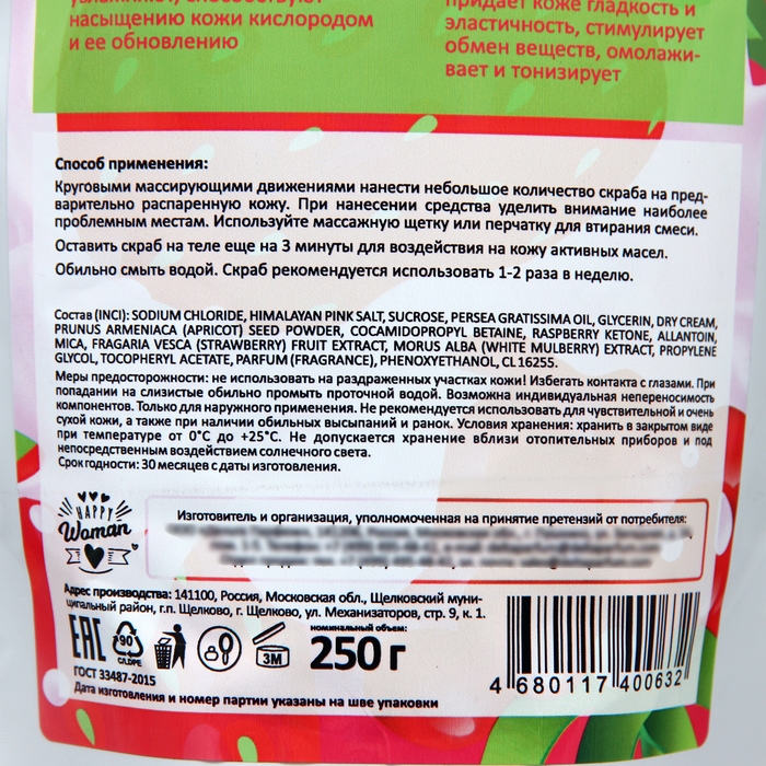 Скраб для тела сухой Happy Woman клубника со сливками, 250 г