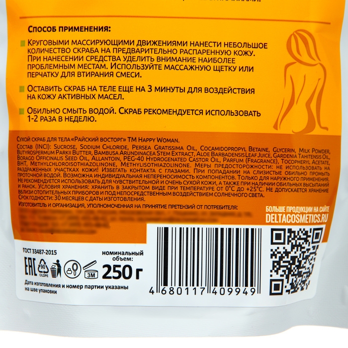 Скраб для тела сухой Happy Woman райский восторг с бамбуком 250 г