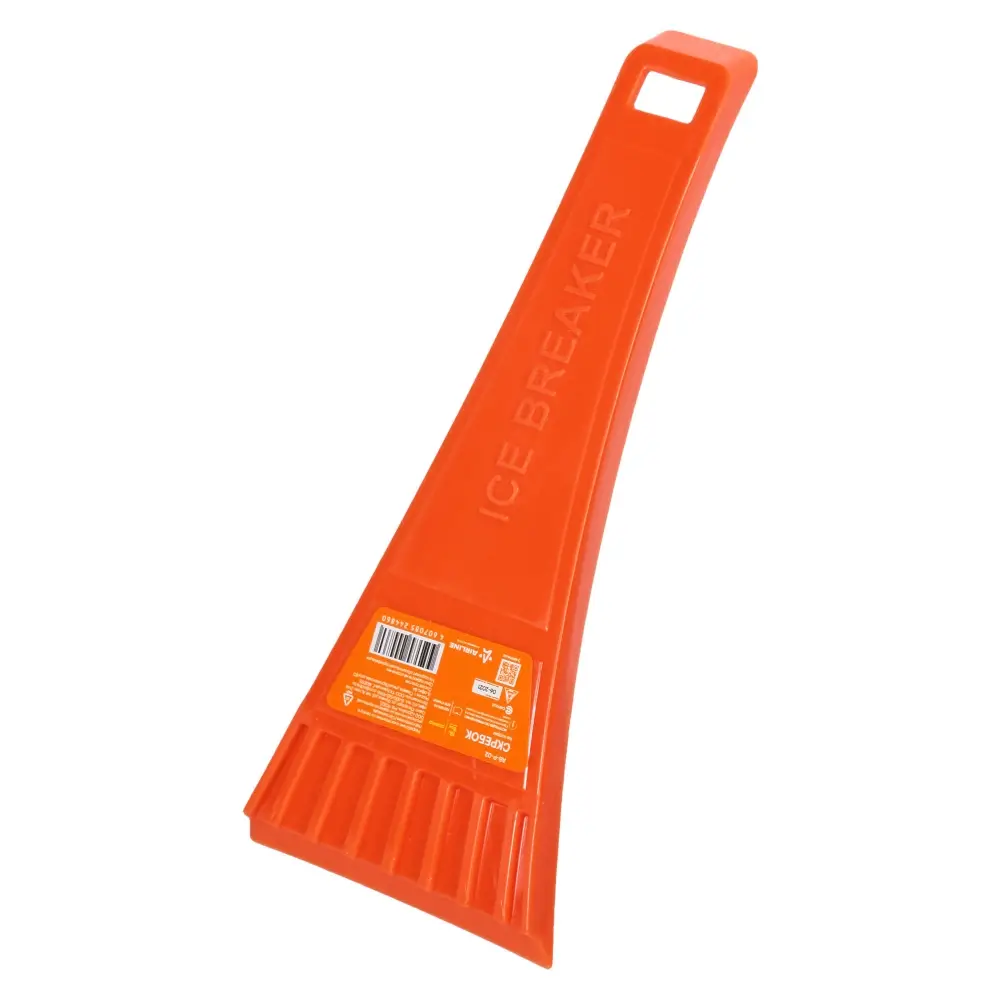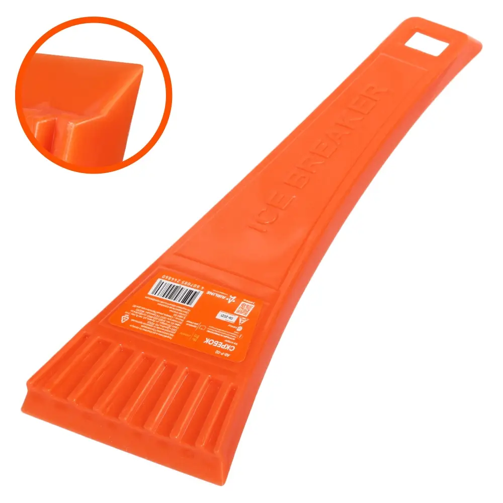 Скребок из морозостойкого пластика с простым и минималистичным дизайном. Рабочая поверхность скребка гладкая, а на верхней части поверхности расположен ребристый слой, помогающий тщательнее удалять лед с любых плоскостей.